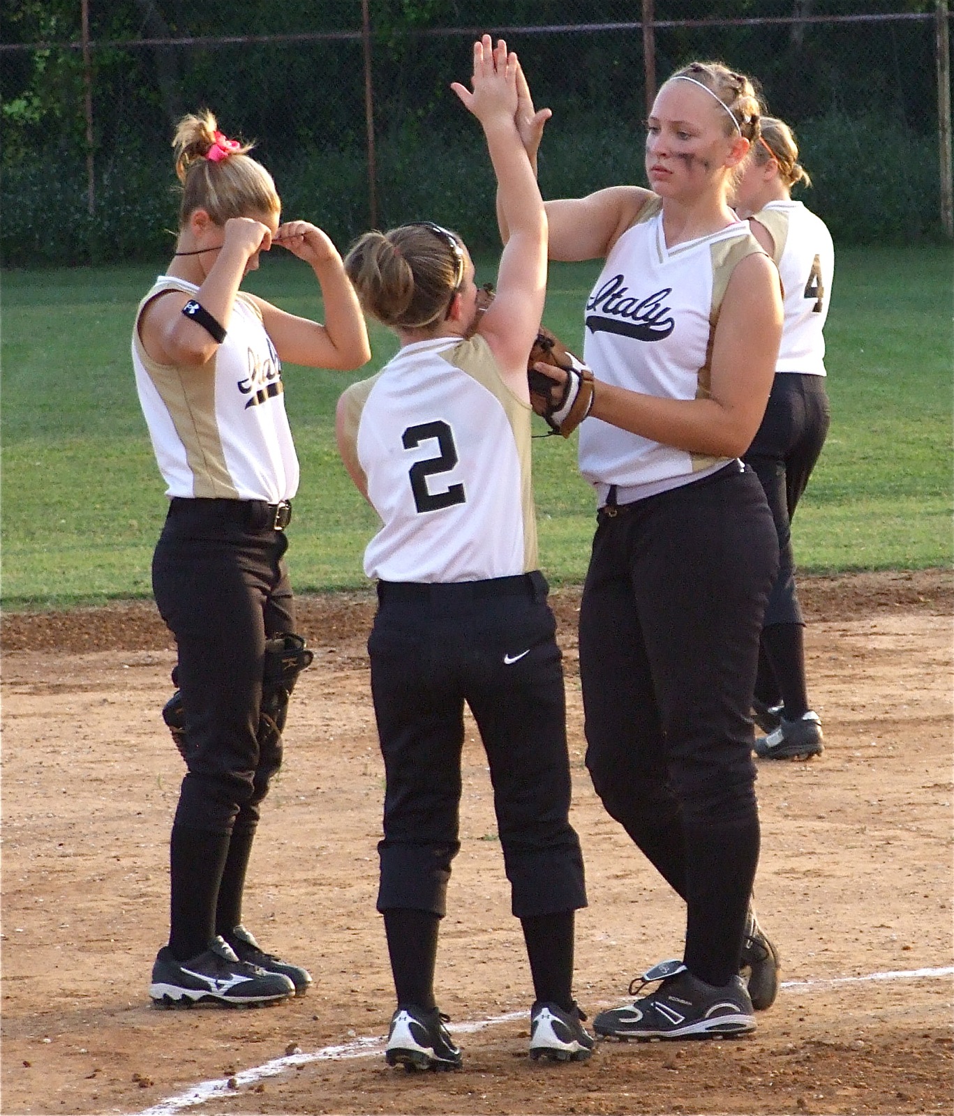 IYAA Baseball/Softball and T-Ball teams head into the late innings « previous story album next » Nice job — Tara Wallis high fives pitcher Jaclynn Lewis while Bailey Eubank makes an equipment adjustment. (Barry Byers) Download original photo