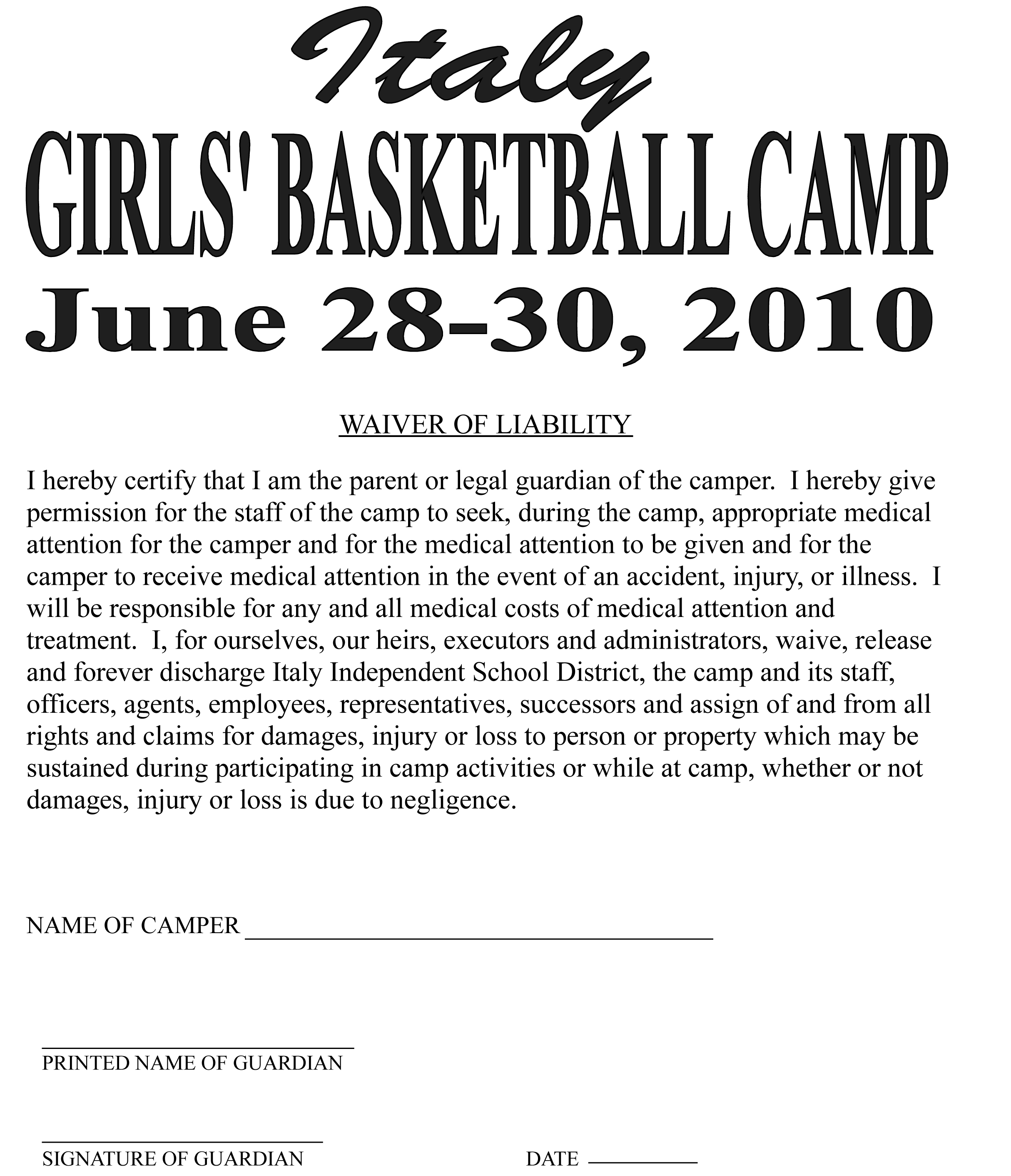 Italy girls’ basketball camp scheduled for June 28-June 30 « previous story album next » Waiver Download original photo