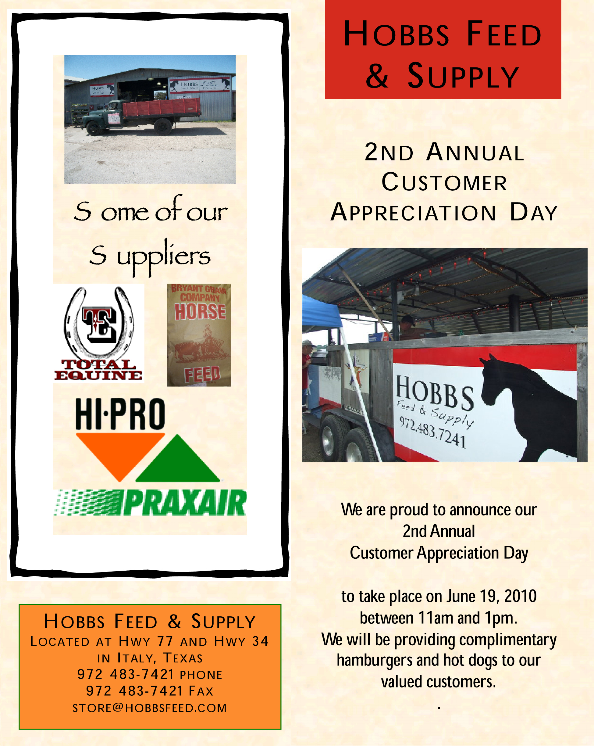Hobbs Feed & Supply 2nd Annual Customer Appreciation Day, June 19 « previous story album next » Download original photo
