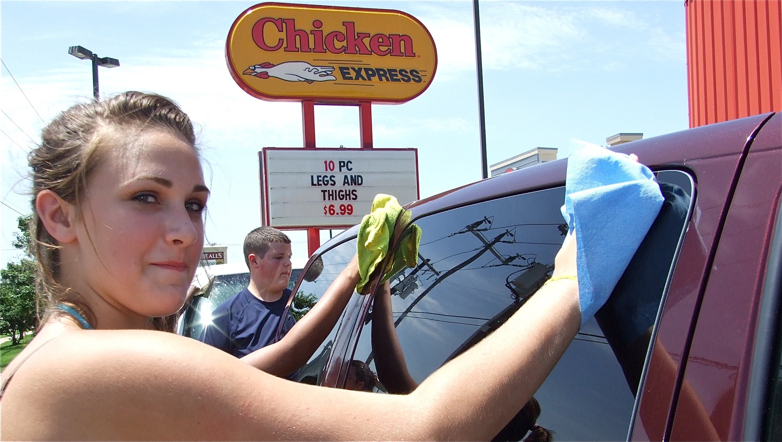 IHS Band conducts car wash at Chicken Express in Waxahachie « previous story album next » Need a hand? — Briann Perry multitasks while Zachary Mercer dries off the back of the van. Download original photo