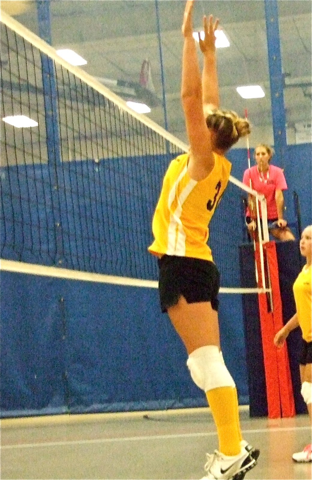 Italy volleyball team competes in YMCA championship game « previous story album next » Maddy leaps — Madison Washington tries to block a return by Maypearl. (Barry Byers) Download original photo