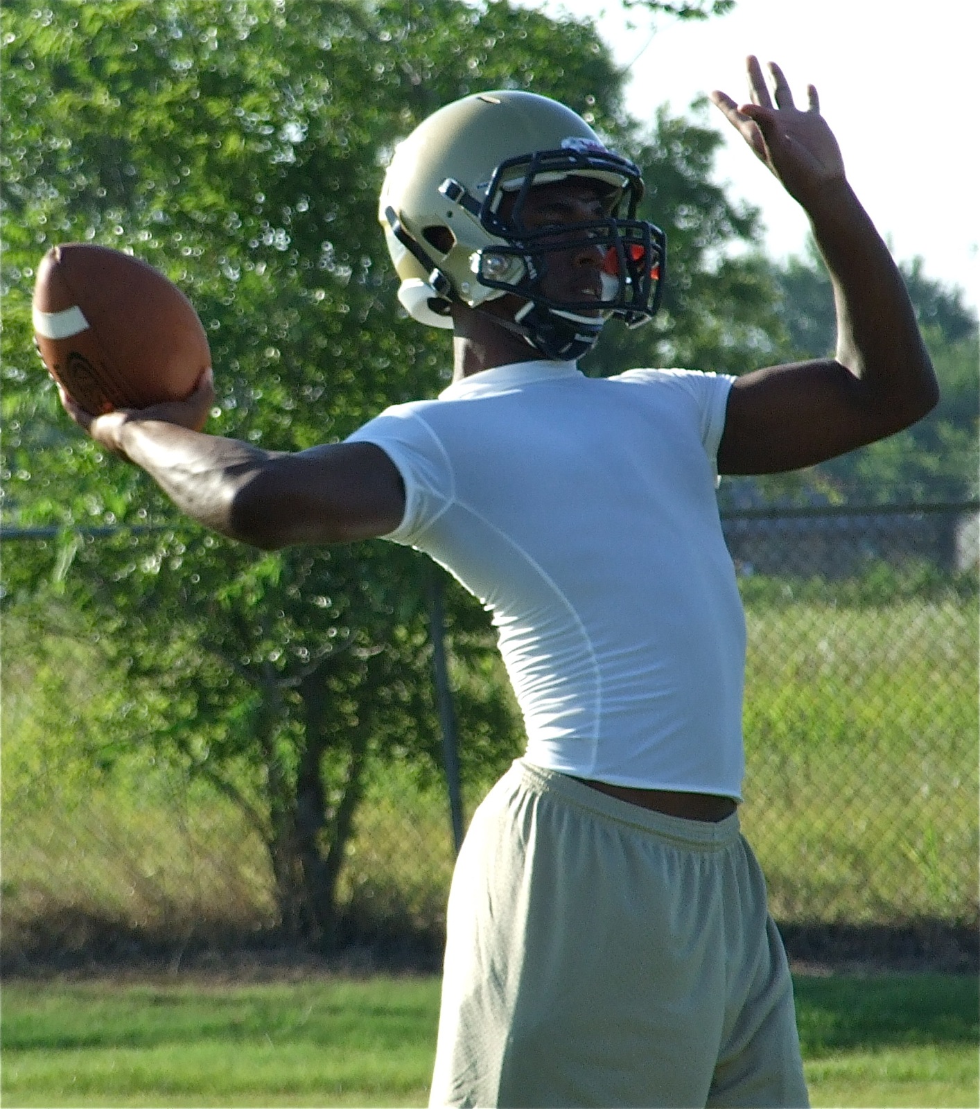Gladiator Training School now in session « previous story album next » Mr. Quarterback — Jasenio Anderson and the right arm of the Gladiators’ offense. (Barry Byers) Download original photo