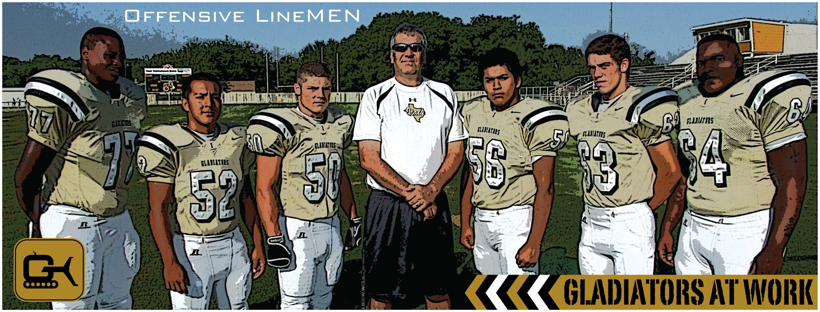 Italy Gladiators to scrimmage Waco Reicher Cougars in Waco « previous story album next » Gladiators at work — Italy’s offensive linemen: Larry Mayberry, Jacob Lopez, Ethan Simon, Lineman Coach Stephen Coleman, Omar Estrada, Brandon Souder and Bobby Wilson. (Barry Byers) Download original photo