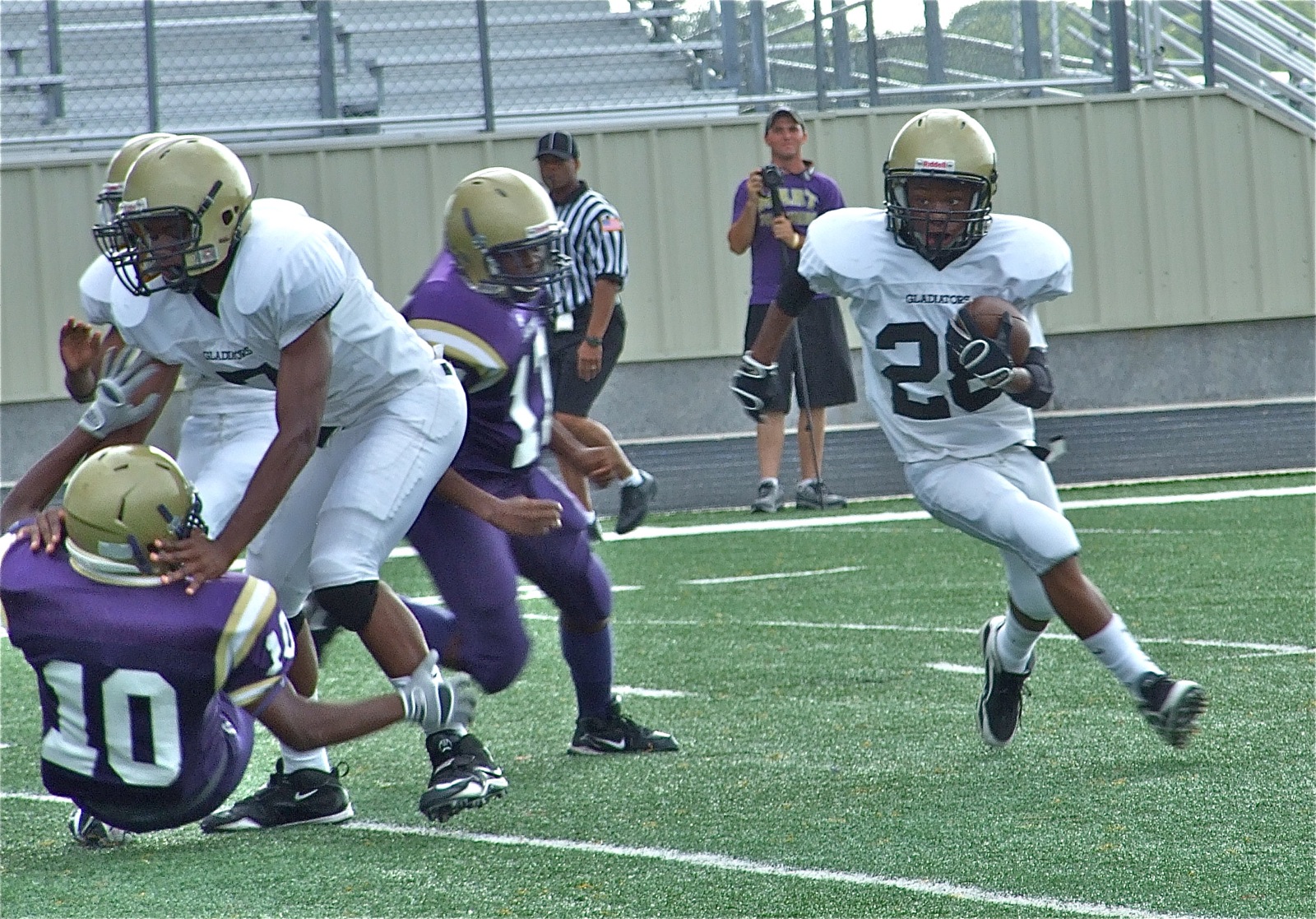 Italy’s J.V. Gladiators try to rally in fourth quarter against Mart « previous story album next » Breakfast for dinner — Paul Harris treats himself to a pancake and Eric Carson takes advantage returning the opening kickoff to the 49-yard line. (Barry Byers) Download original photo