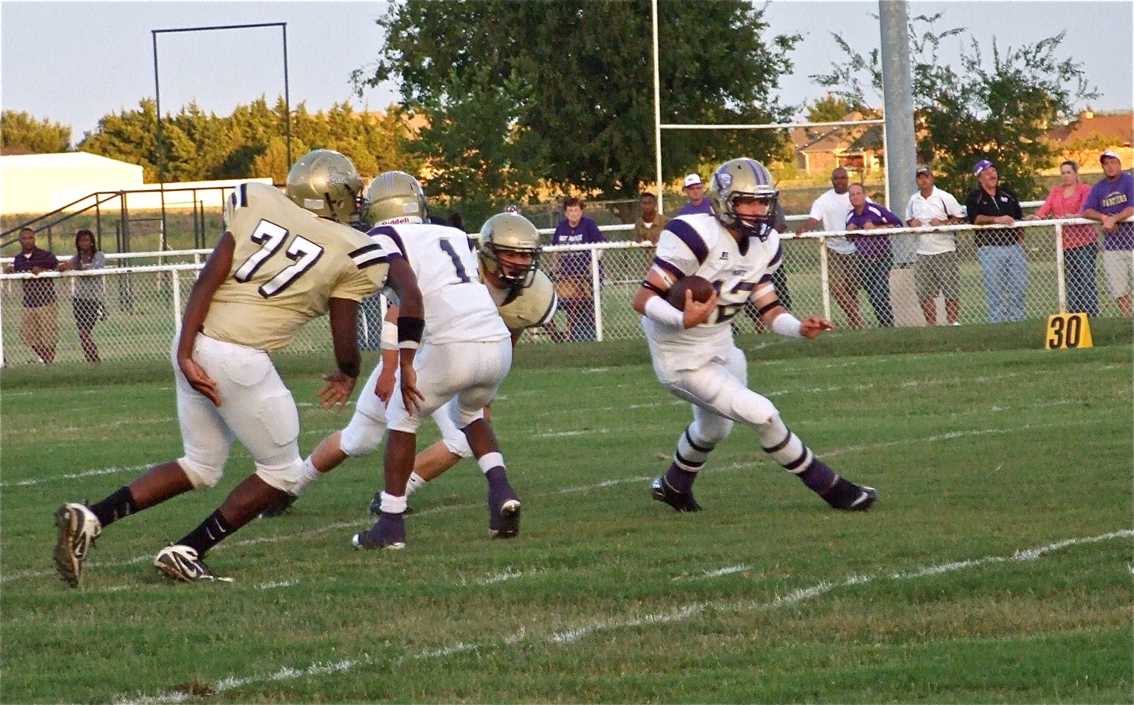 Gladiators struggle to slow down Mart’s highlight reel offense « previous story album next » Larry attacks — Italy’s Larry Mayberry(77) brushes off a Panther block on his way to Mart’s quarterback. (Barry Byers) Download original photo