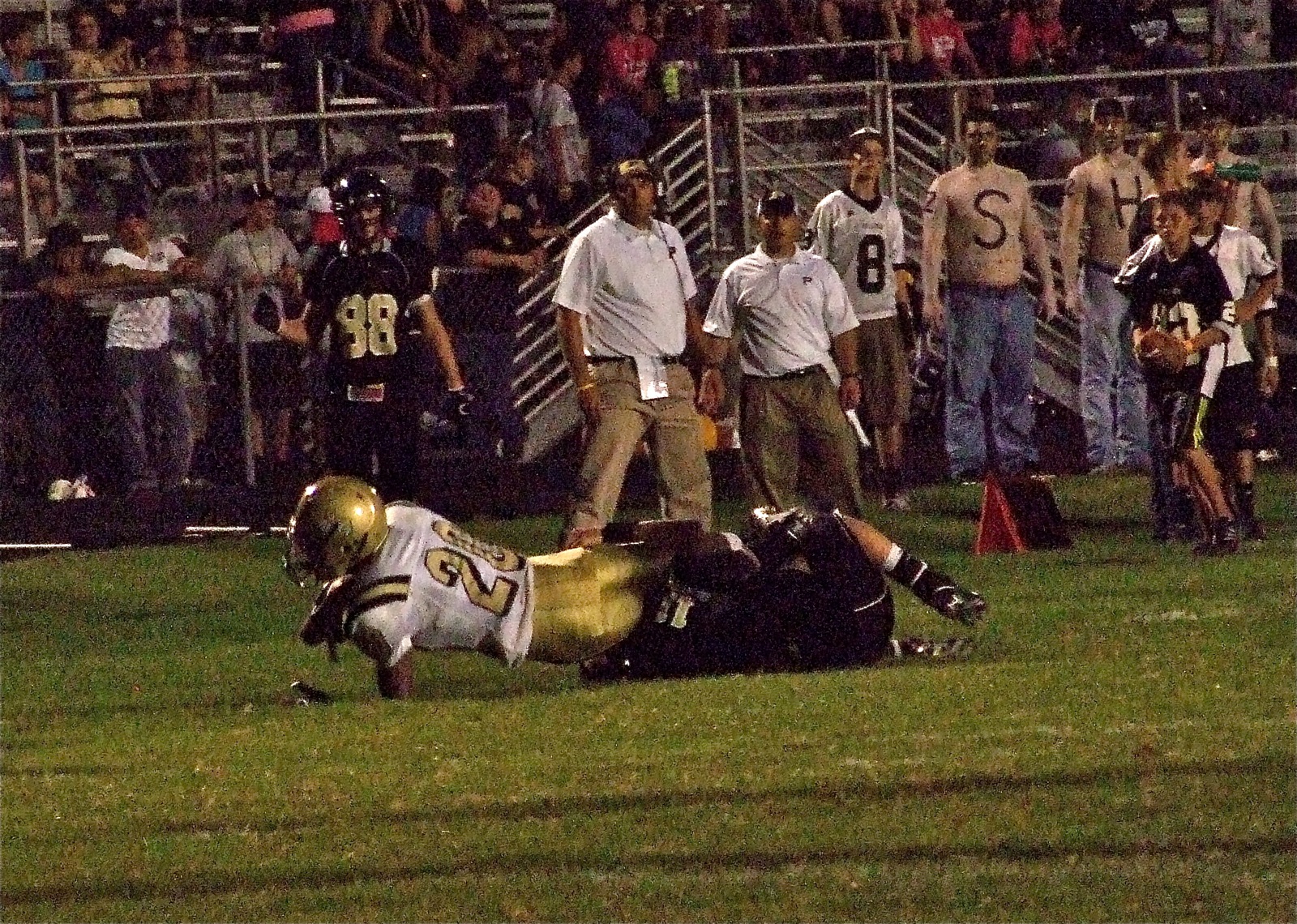 The Italy Gladiators punish the Palmer Bulldogs 27-7 « previous story album next » In the Red Zone — Italy’s De’Andre Sephus(20) catches a 26-yard pass before being tackled by a Bulldog defender in the second half. (Barry Byers) Download original photo