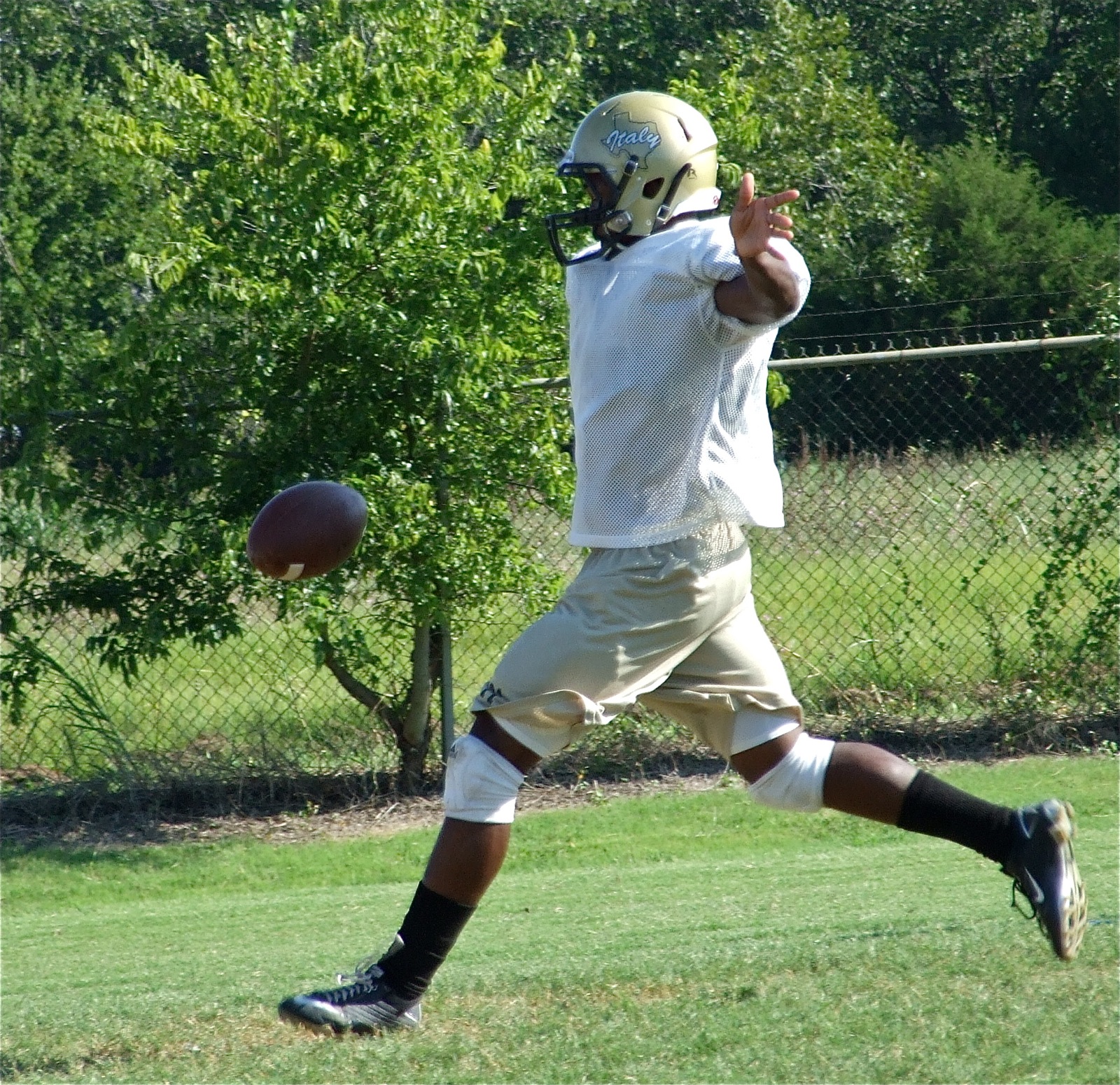 Good luck Gladiators! « previous story album next » Jasenio punts — All-State punter Jasenio Anderson will certainly help kick the spots off the Jaguars! (Barry Byers) Download original photo