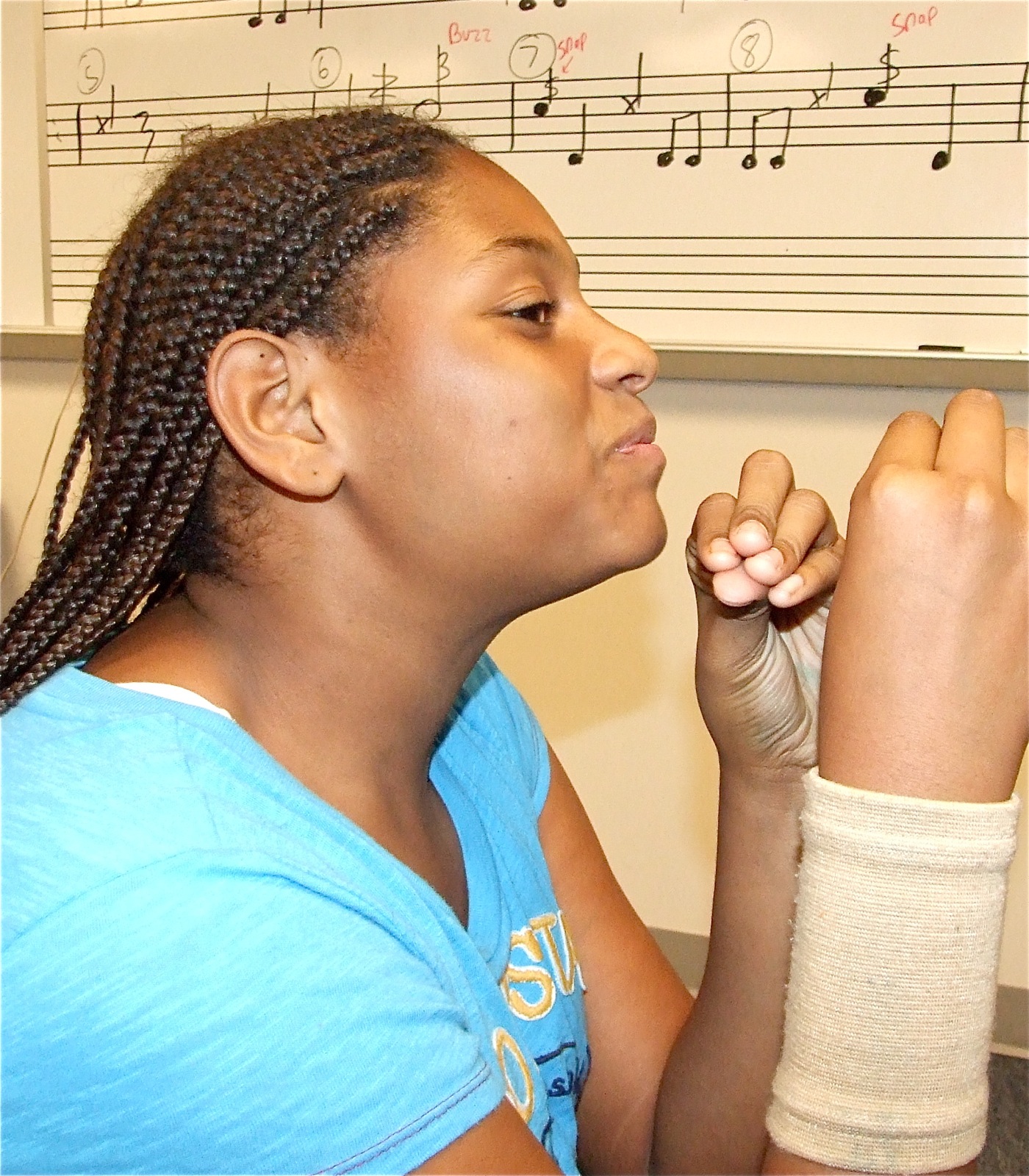 Project Sound; Stafford’s 6th grade band needs instruments « previous story album next » Something’s missing? — 6th grade band member Olivia, pretends to play an instrument. The 6th grade band class is currently seeking instrument donations from the community. (Barry Byers) Download original photo