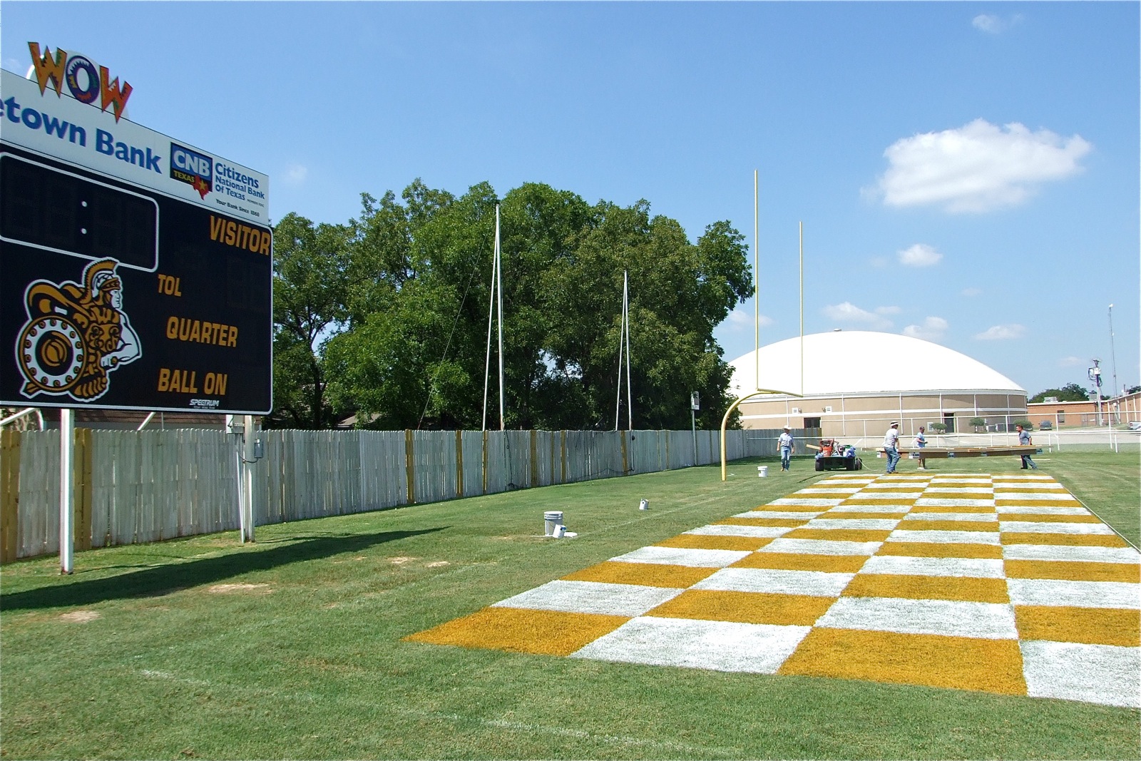 IHS School Board Members help paint the endzones for homecoming « previous story album next » Sideline view (Barry Byers) Download original photo