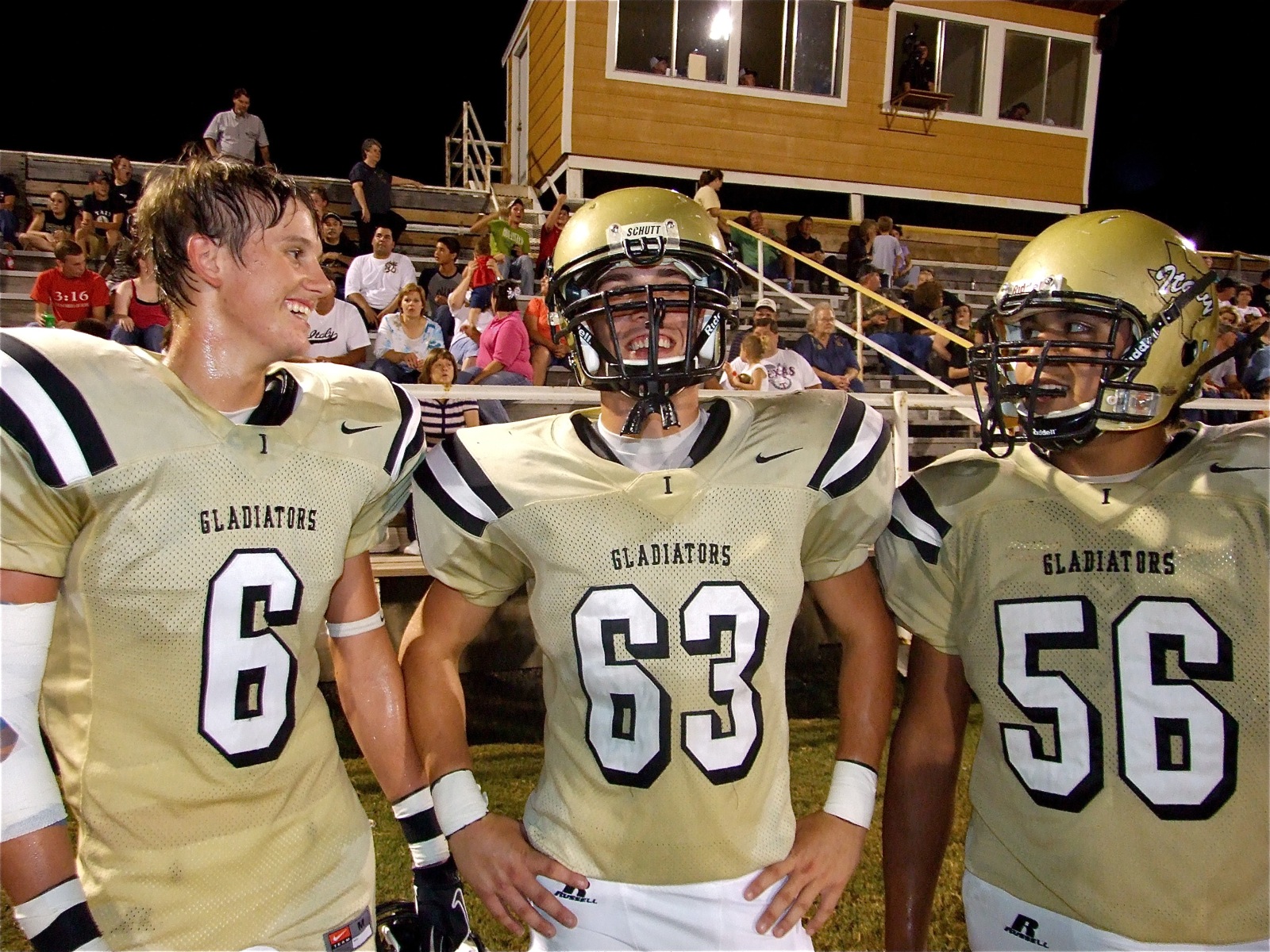 Italy wins third straight game, 63-0 over Red Oak Life « previous story album next » Italy puts up big numbers — Gladiators Jase Holden(6) and Omar Estrada(56) celebrate their winning by Brandon Souders’ jersey number, 63-0 over the Red oak Life Mustangs. (Barry Byers) Download original photo
