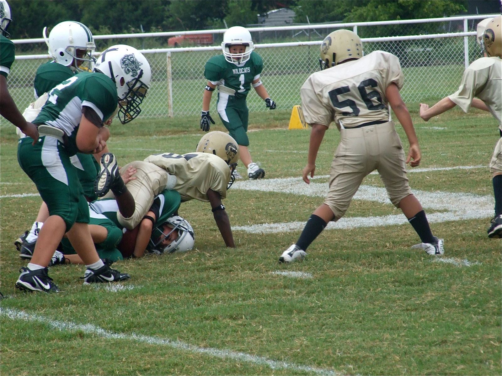 IYAA plays 2-of-3 against Scurry-Rosser before the rains came « previous story album next » Crunch! — Taron Smith(10) tackles a Wildcat runner. (Barry Byers) Download original photo