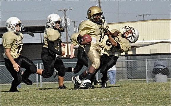 IYAA players and cheerleaders take on the Bulldogs in their backyard « previous story album next » Taron runs ’em over (Michele Cash) Download original photo