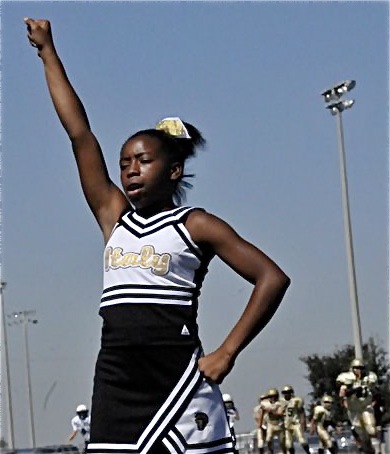 IYAA players and cheerleaders take on the Bulldogs in their backyard « previous story album next » Quintera cheers (Michele Cash) Download original photo