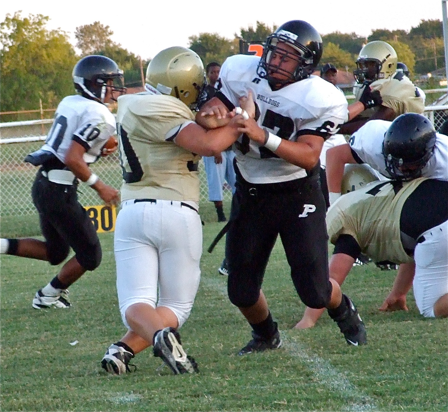 Italy’s JV Gladiators use bye week to say, “Hello,” to Palmer « previous story album next » Close contact — Italy’s Zain Byers(50), Hank Seabolt(76) and Paul Harris(7) close in on the Palmer runner. (Barry Byers) Download original photo