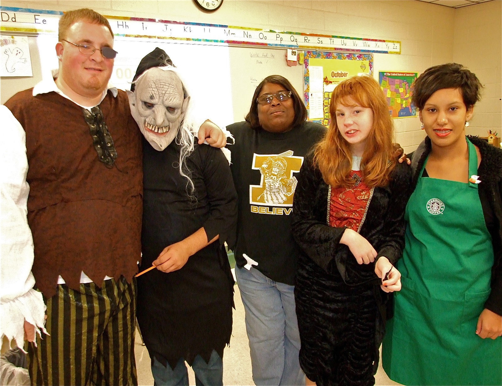 Boo! — The C.B.I. & Life Skills Class participated on Halloween dress-up day as well. Pictured are: Mr. Michael Destafani, Blake Vega, Brenda Davis, Kathie Conner and Morgan Martinez. (Barry Byers)