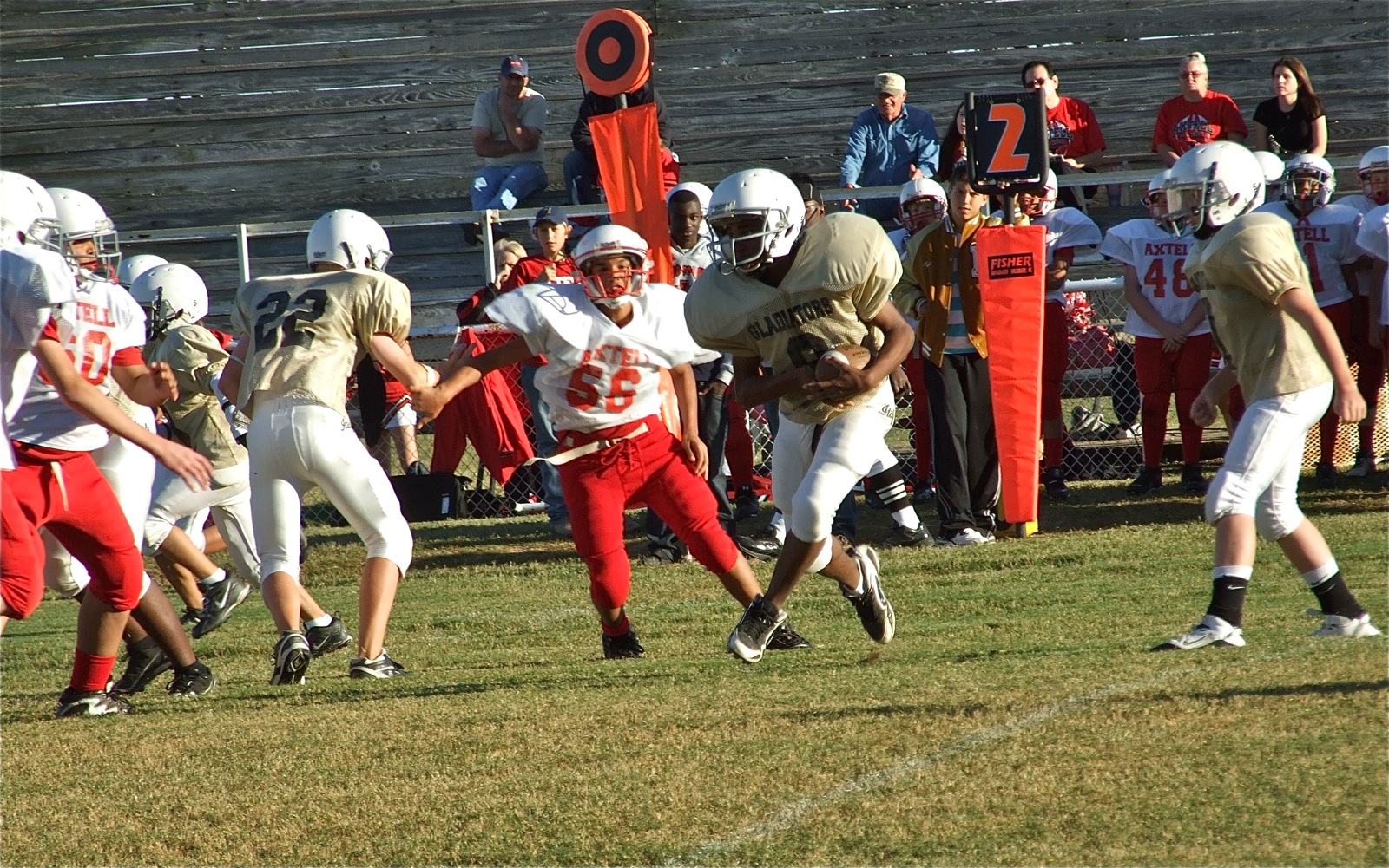 Italy’s JV Gladiators beat Axtell 16-8, Junior High teams tie 22-22 « previous story album next » JaRay is gone — John Escamilla(7) hands to JaRay Anderson(9) who runs left for several yards against the Axtell Longhorns. (Barry Byers) Download original photo