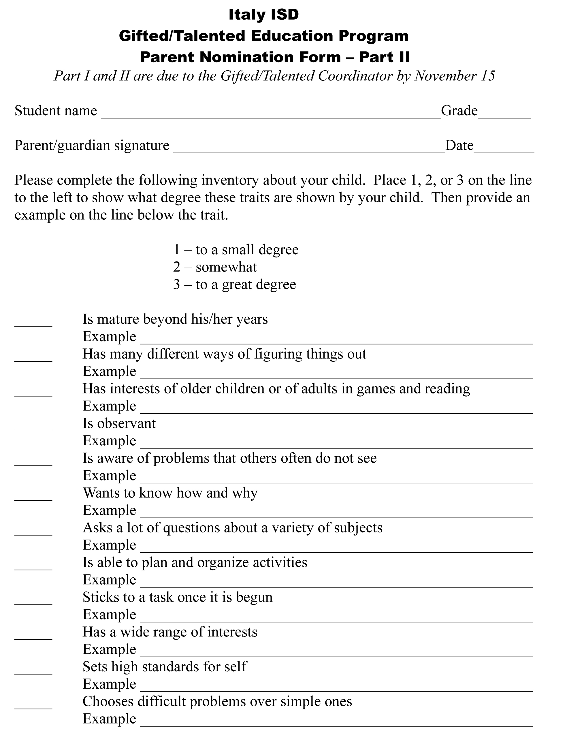 Italy ISD Parent Nomination for Gifted/Talented « previous story album next » Download original photo