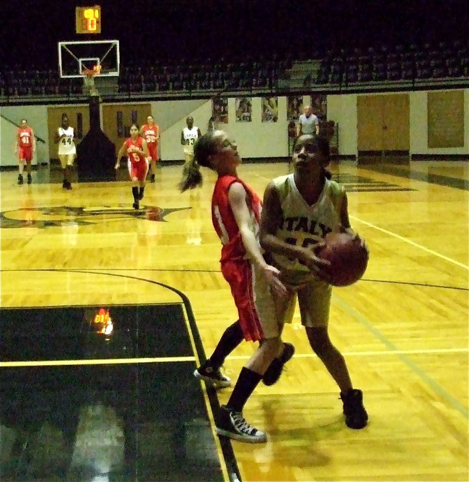 Raven’s flurry — Italy’s Raven Harper(45) steals the ball and then shoots late in the fourth to help her 7B Girls team get back into the game. Harper scored 6-points in the final minutes but Axtell held on for the win 10-6. (Barry Byers)