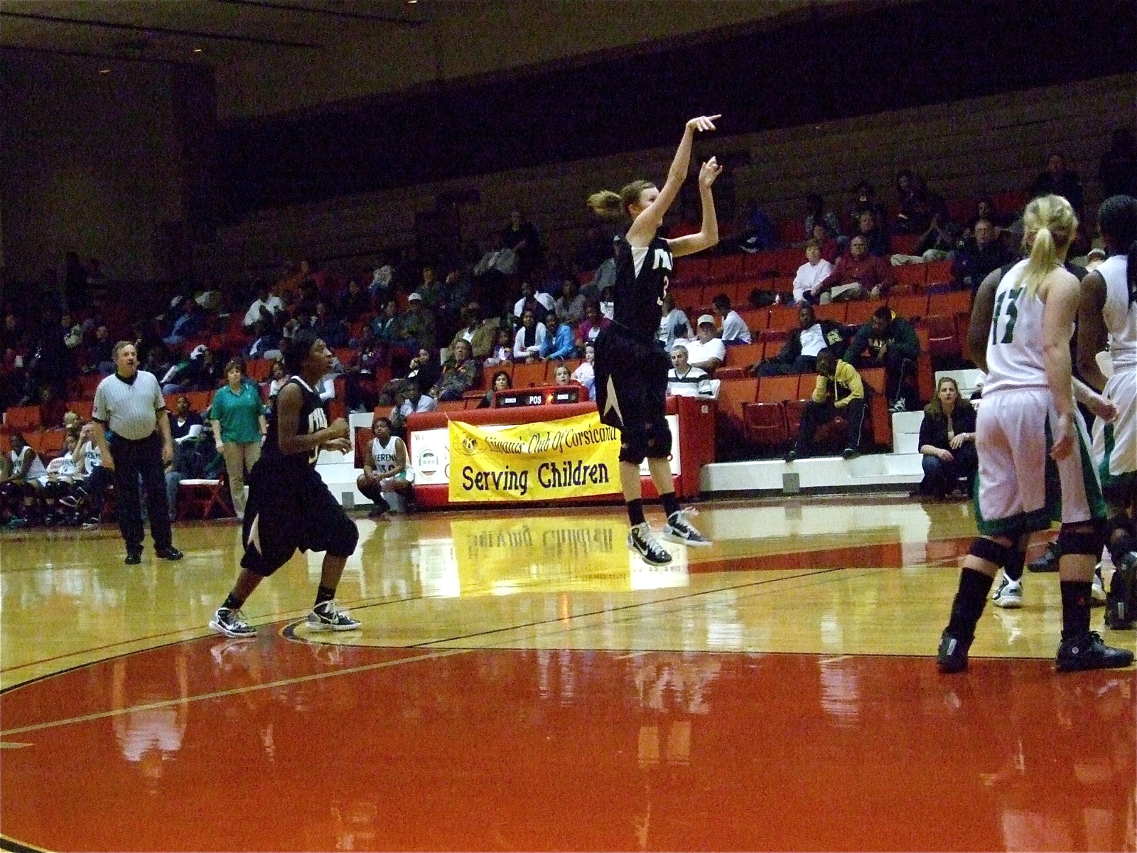 Lady Gladiators compete for Kiwanis Classic Consolation Championship « previous story album next » Sure shot — Italy’s Kaitlyn Rossa(3) gets an open look near the top of the lane while Jameka Copeland(5) heads toward the basket for a possible rebound. (Barry Byers) Download original photo