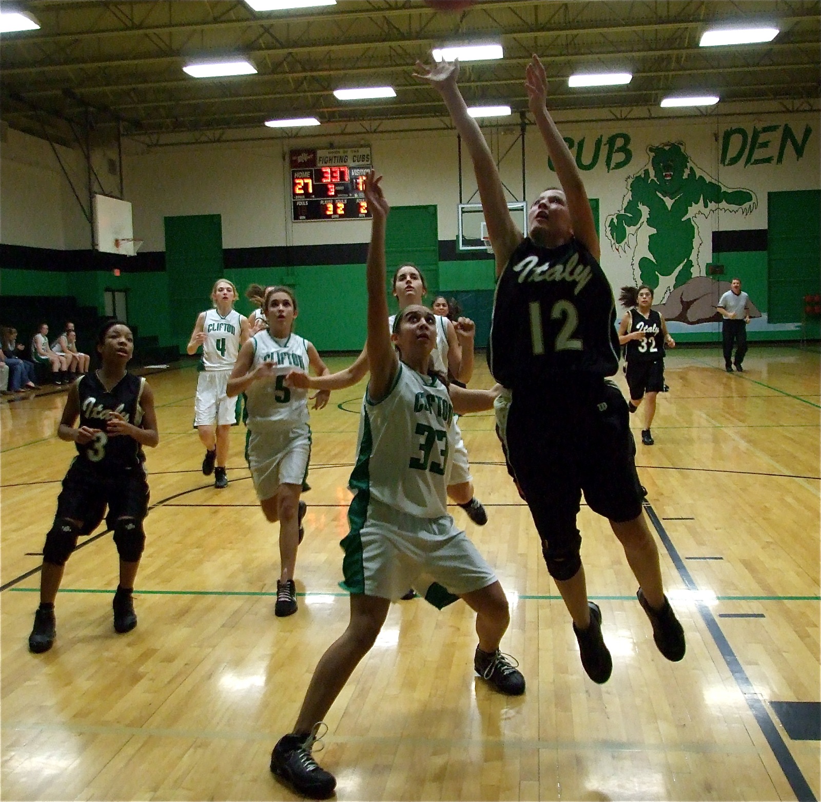 The Italy Gladiators and Lady Gladiators venture into bear country « previous story album next » Paola Mata(12) gets to the basket against Clifton — JV Lady Gladiator Paola Mata(12) finishes the fast break strong against Clifton’s JV Girls. (Barry Byers) Download original photo
