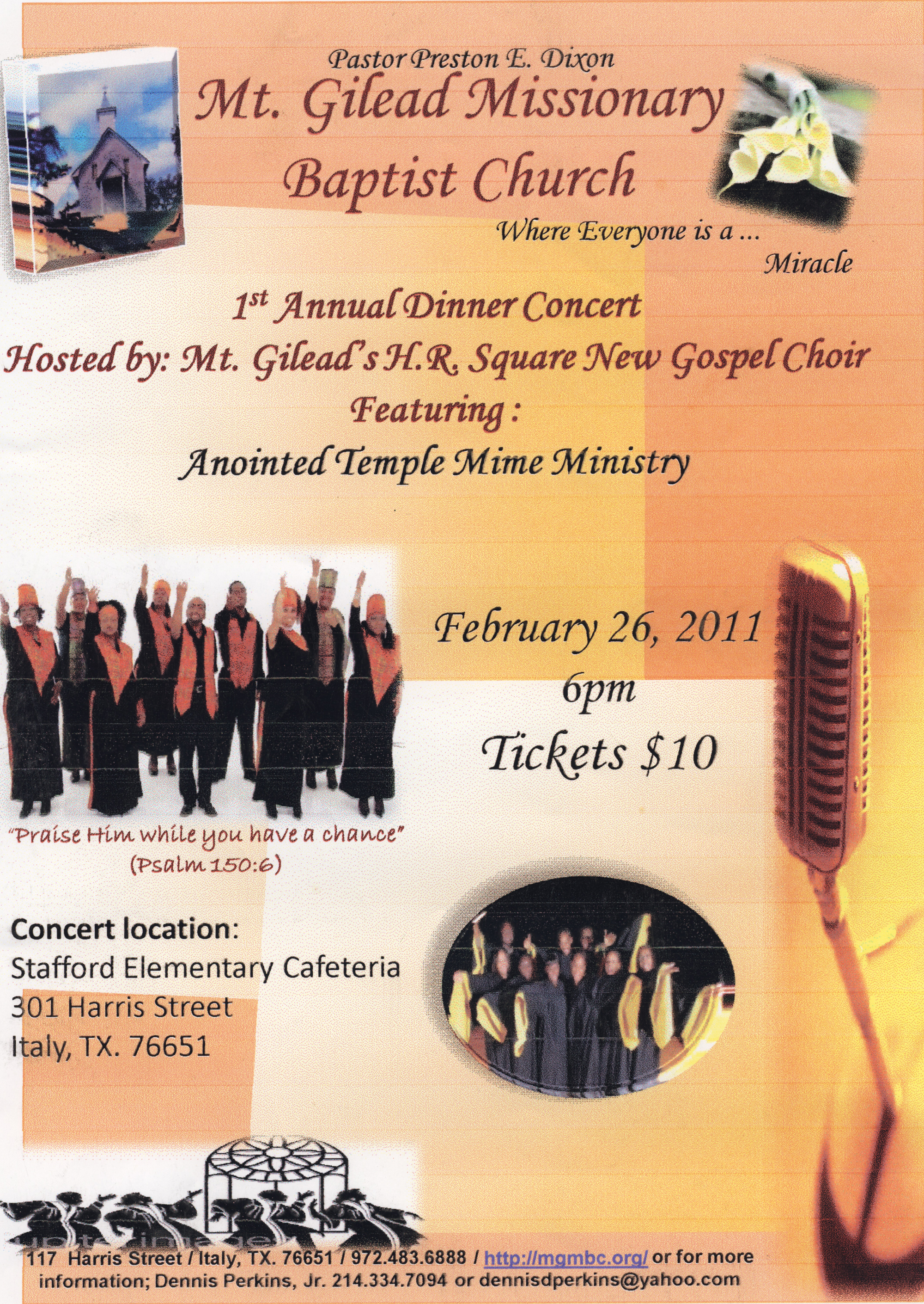 Mt. Gilead Missionary Baptist Church to hold dinner concert « previous story album next » Download original photo