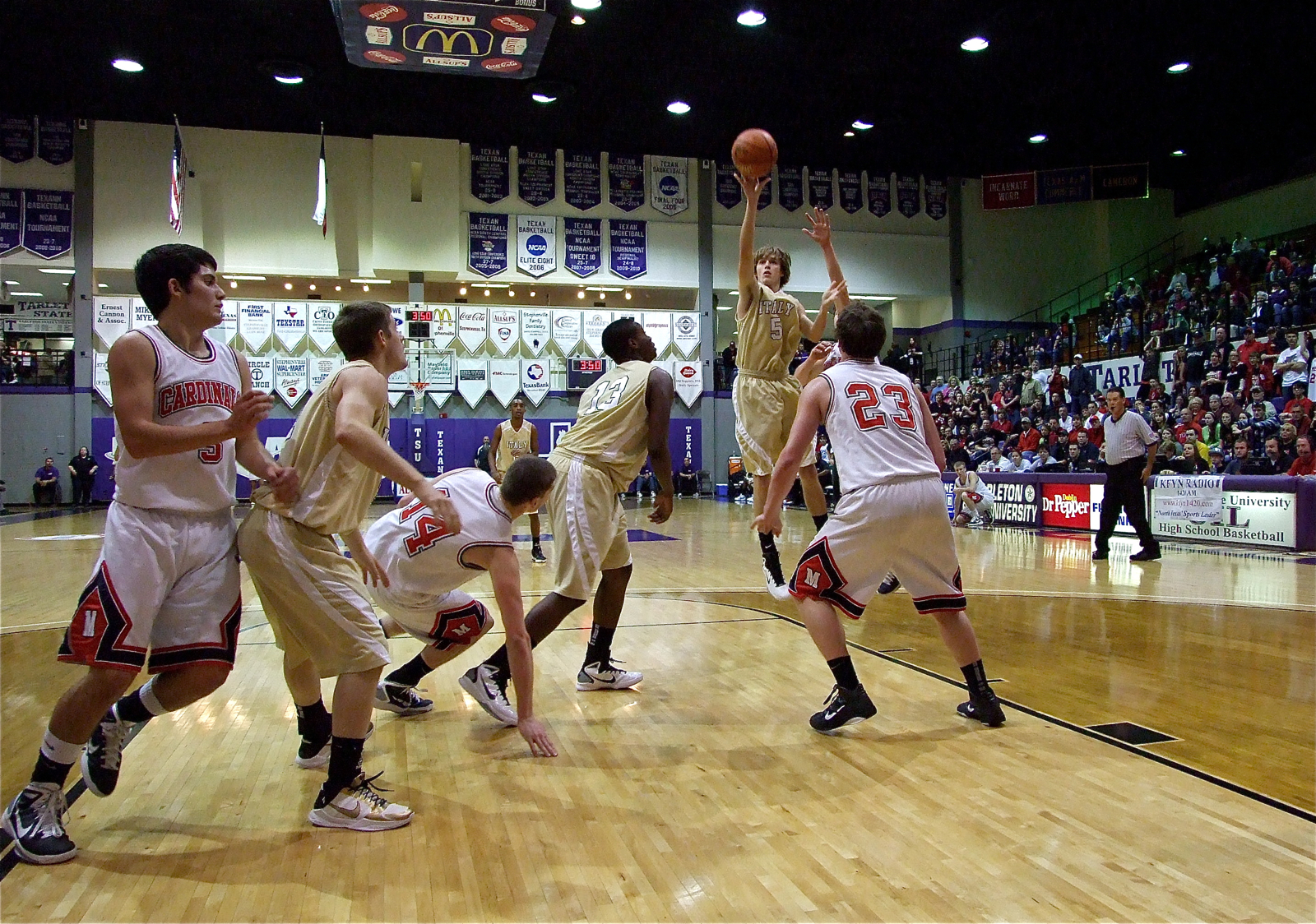 Top-ranked Melissa proves why; Italy falls 74-42 in Regional Final « previous story album next » Colton pulls the trigger — Gladiator Colton Campbell(5) shoots a one-handed jumper from inside the lane. (Barry Byers) Download original photo