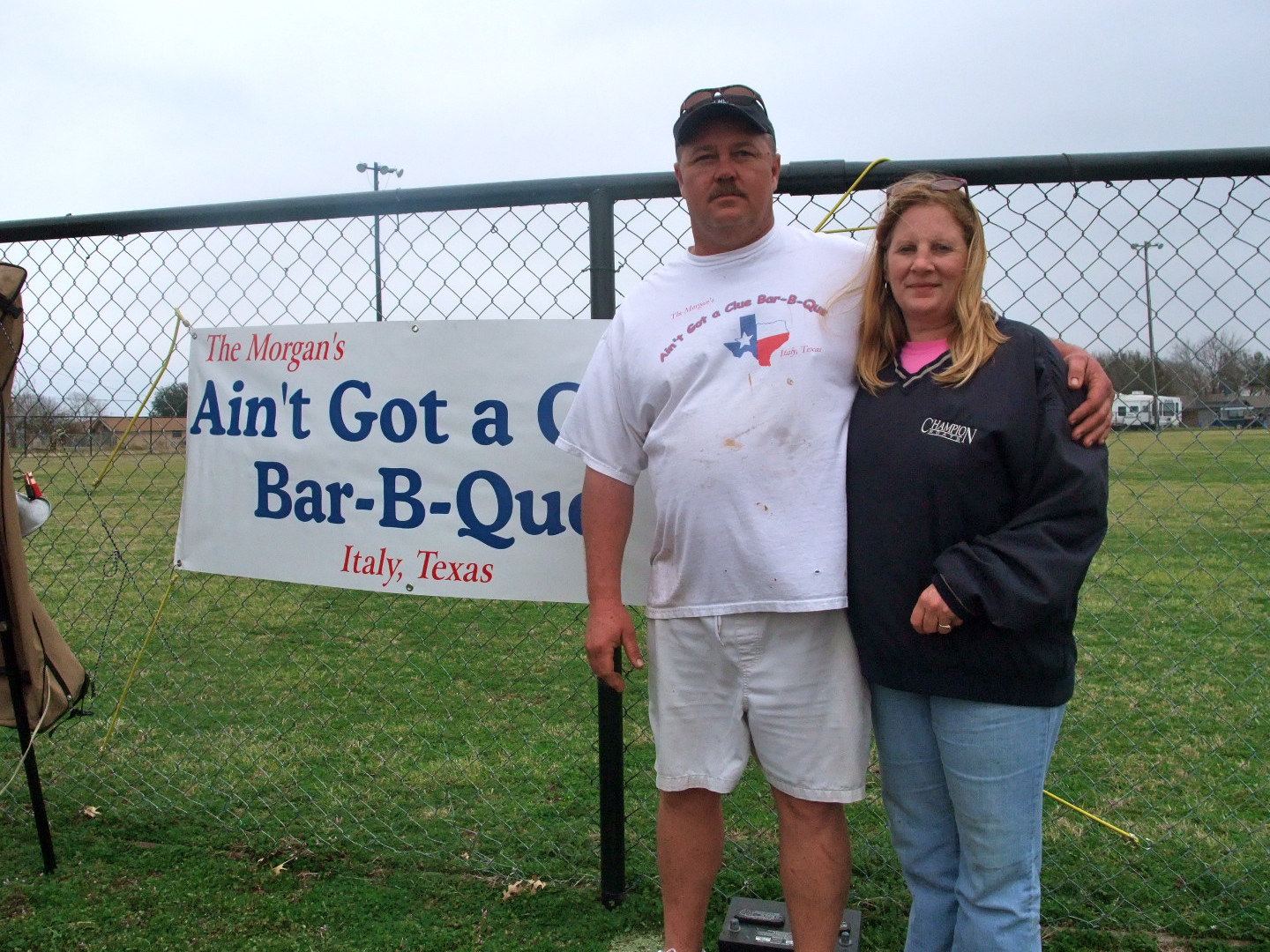 Italy Lions Club 3rd Annual BBQ Cook-Off « previous story album next » Brian and Carla Morgan — They entered their brisket, pork butt, beans and chicken. (Cindy Sutherland) Download original photo