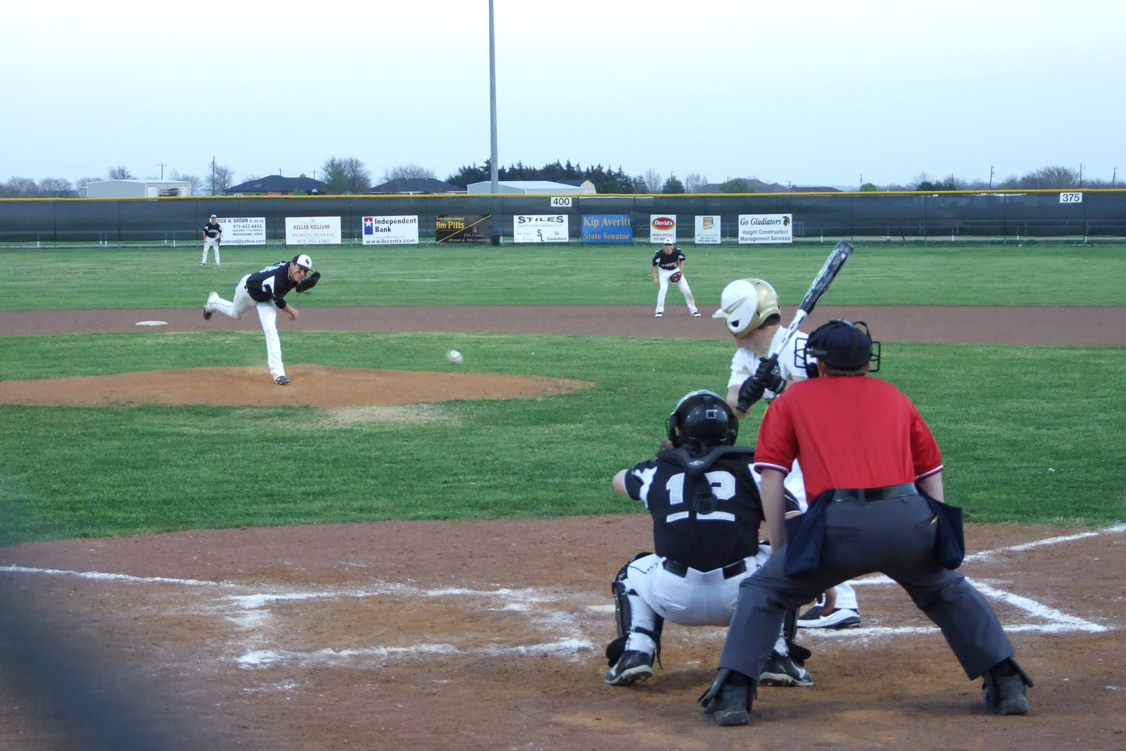 Gladiator Baseball « previous story album next » Hefty Lefty — Ethan Simon gets up to bat and moved Ryan Ashcraft around. (Anne Sutherland) Download original photo