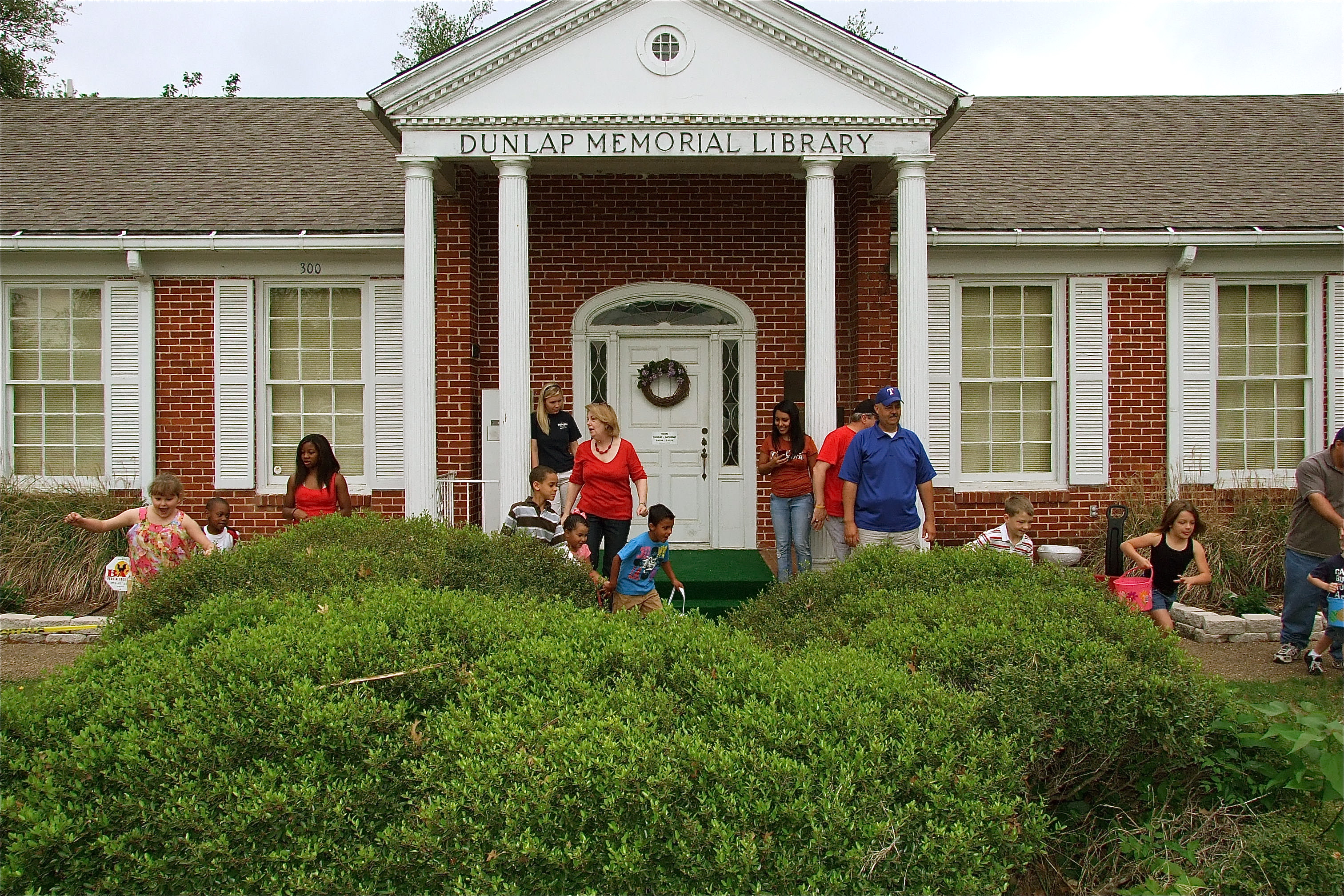 Local Library Hosts Egg Hunt « previous story album next » Dunlap Memorial Library hosts annual Easter Egg hunt — Dunlap Memorial Library’s, Kathy French, announces the beginning of the Easter Egg hunt as excited youngsters begin the search. (Barry Byers) Download original photo