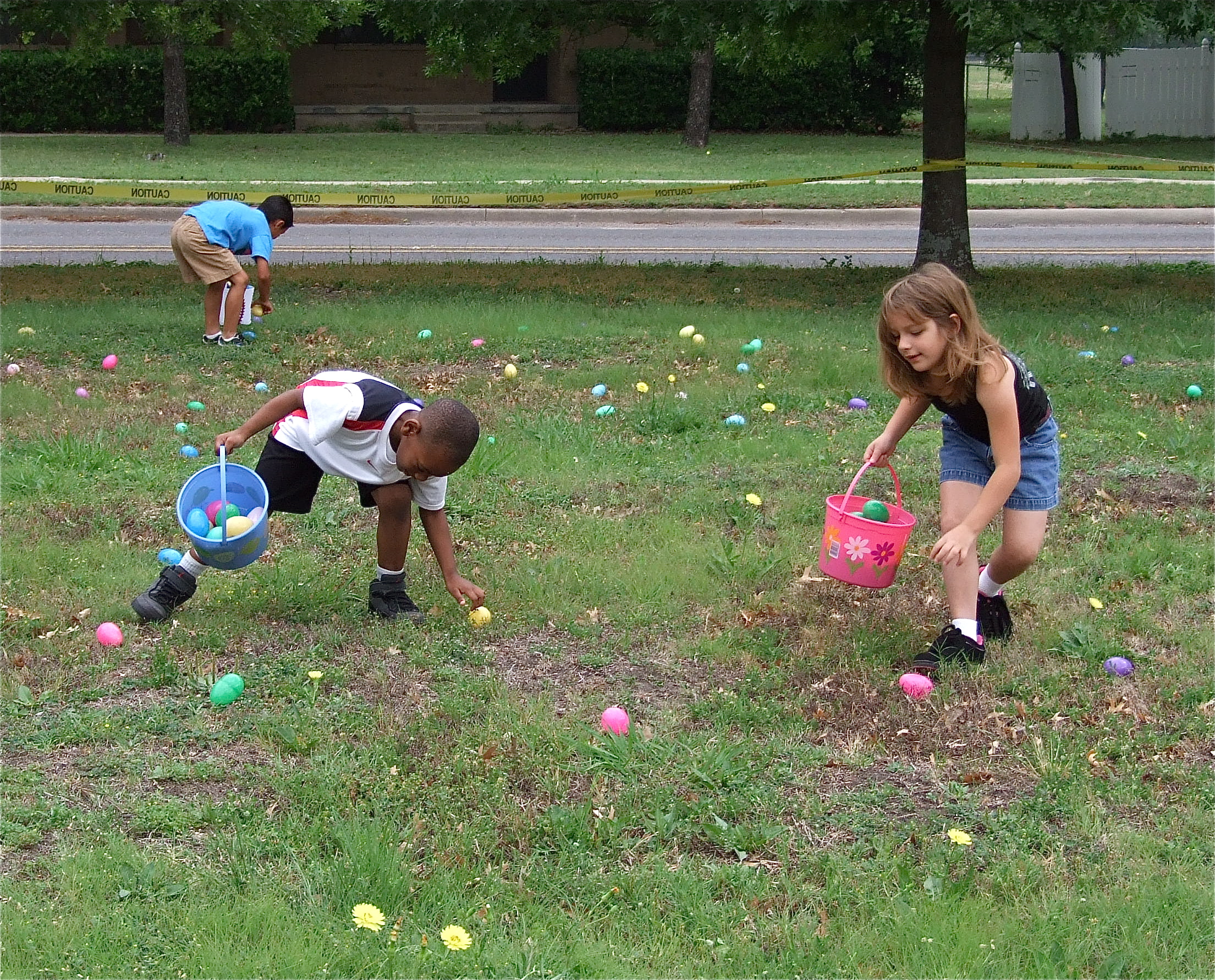 Local Library Hosts Egg Hunt « previous story album next » There’s one! — Eager Egg hunters fill their baskets while spotting eggs covering the Dunlap Memorial Library’s front lawn. (Barry Byers) Download original photo