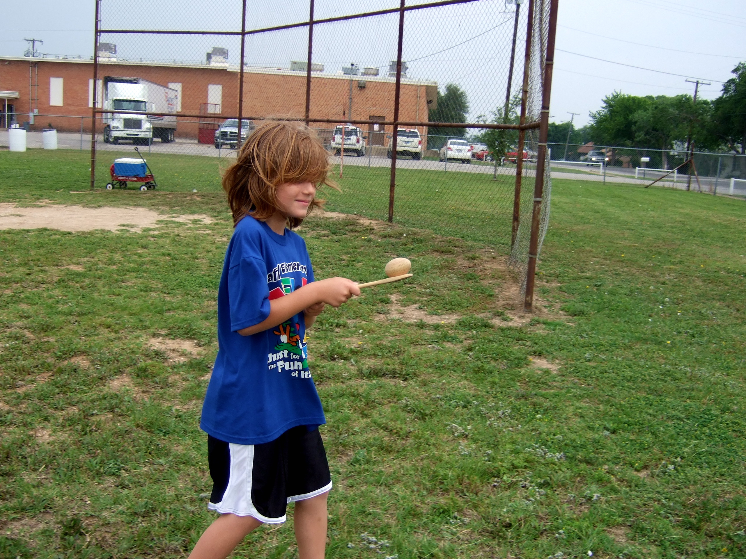 Field Day at Stafford Elementary « previous story album next » This cute little second grader is playing the egg race game and is trying to get back to start without dropping her egg. (Cindy Sutherland) Download original photo