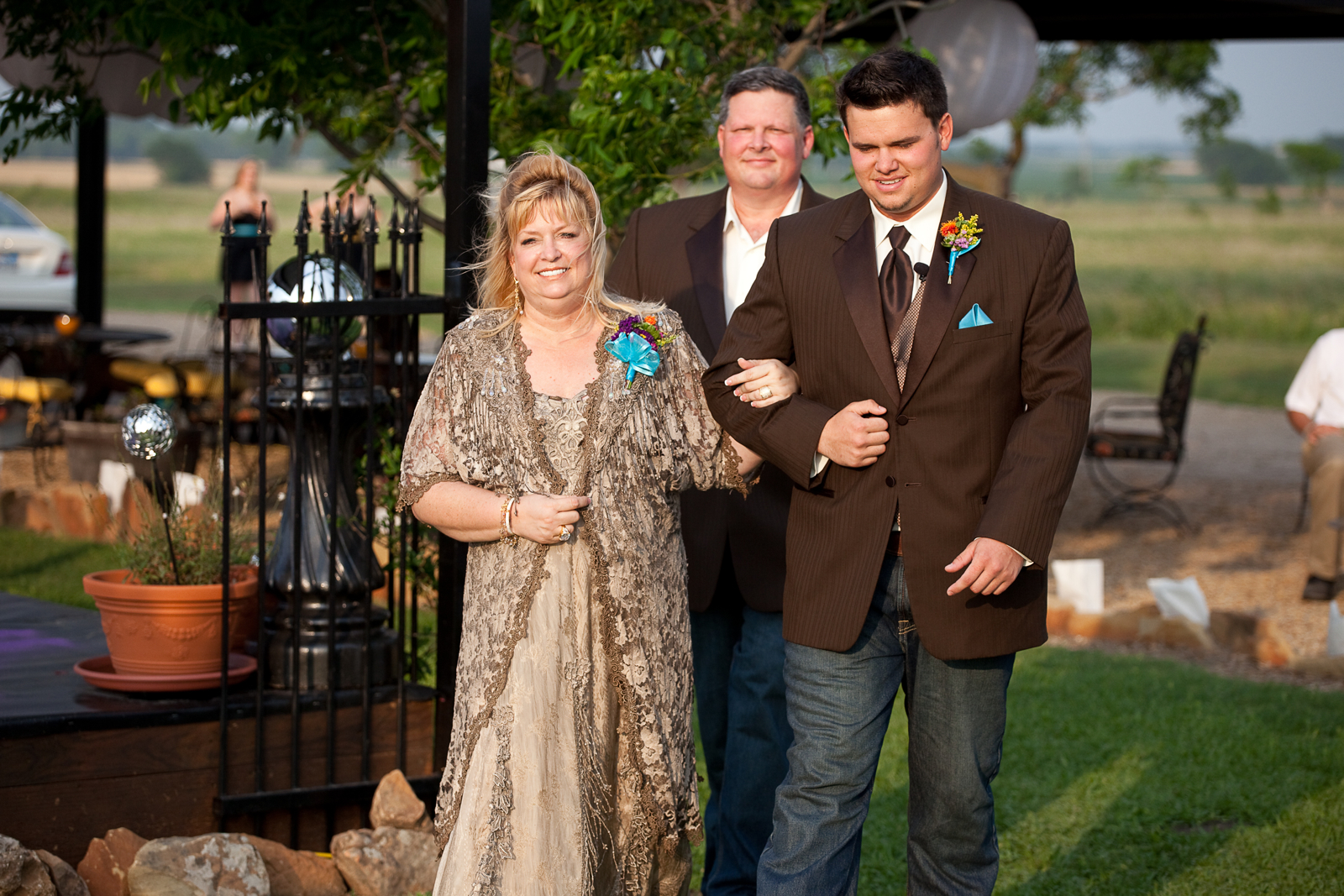 Wedding of the Century « previous story album next » Groom, Andrew, escorts his mom, Trina and dad, Russell Harlow, to their seat. (Marie Q Photography) Download original photo