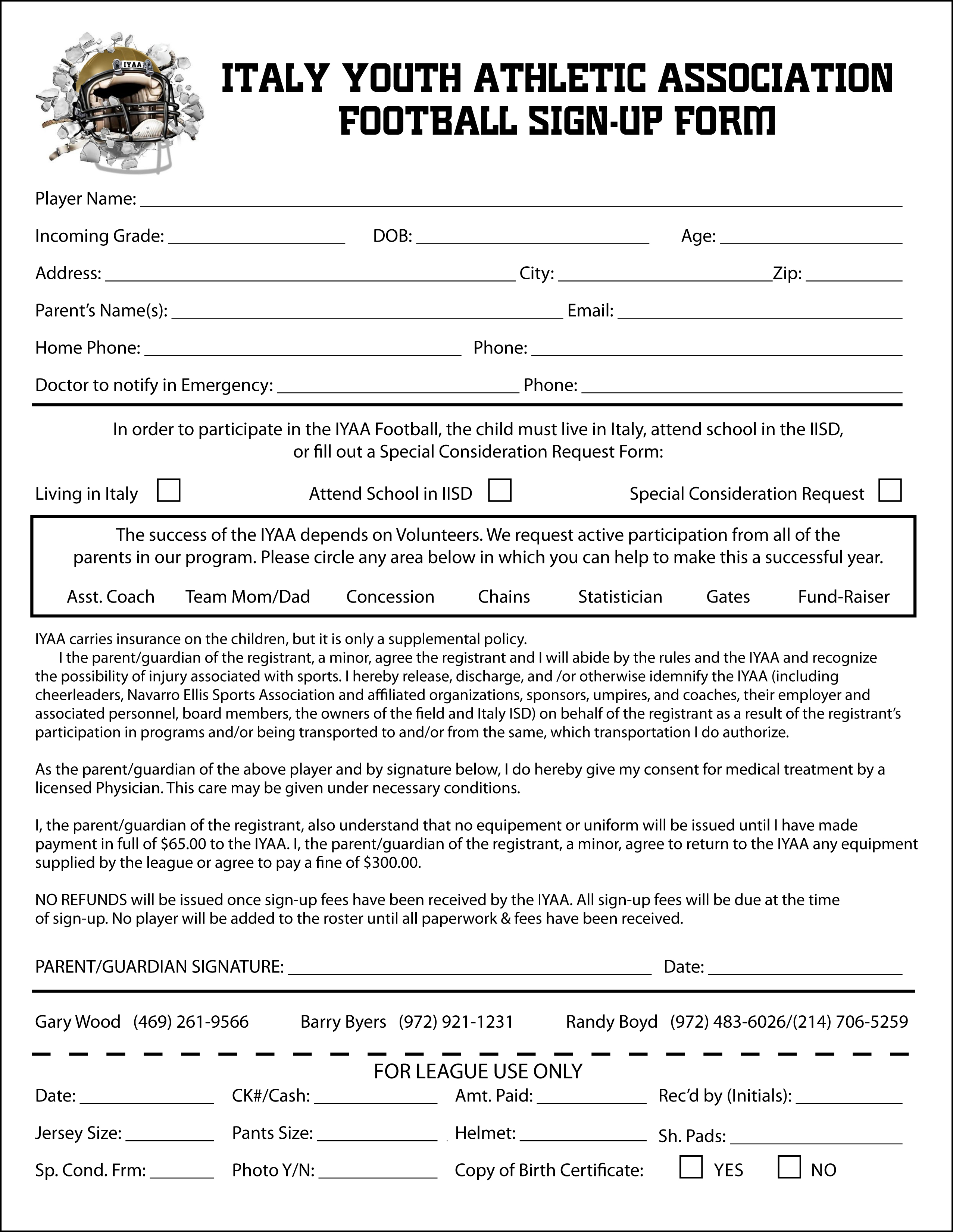 IYAA cheerleading and football sign-ups are Saturday, June 11 « previous story album next » IYAA Football sign-up form. Click image to enlarge and then select, “Fit to page,” when printing. (Submitted photo) Download original photo
