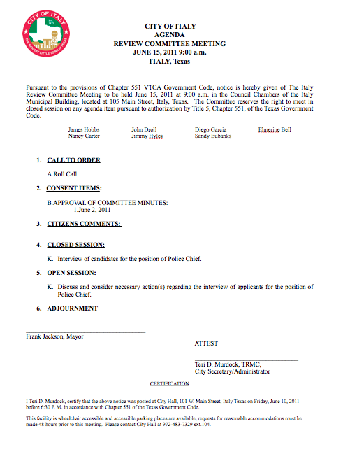 Agenda: Italy Review Committee Meeting, June 15, 2011 « previous story album next » Download original photo