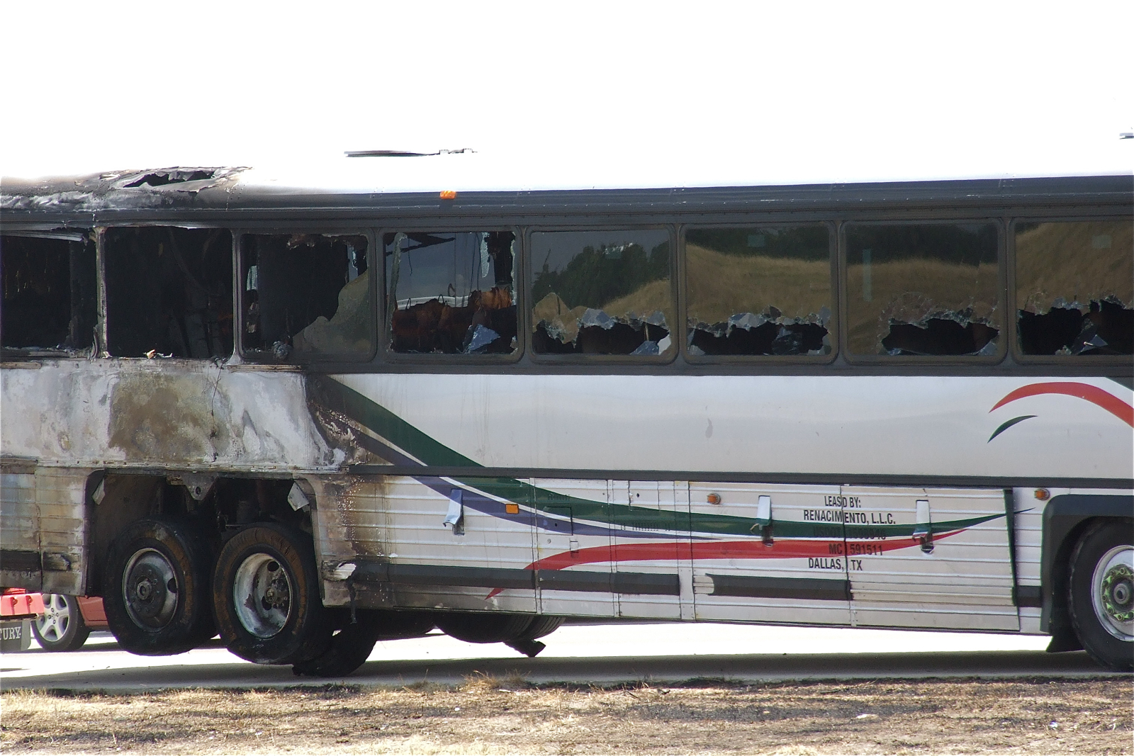 Passengers safe after bus catches fire and sparks dangerous grassfire near Italy « previous story album next » A closer look of the burned and melted bus. (Barry Byers) Download original photo