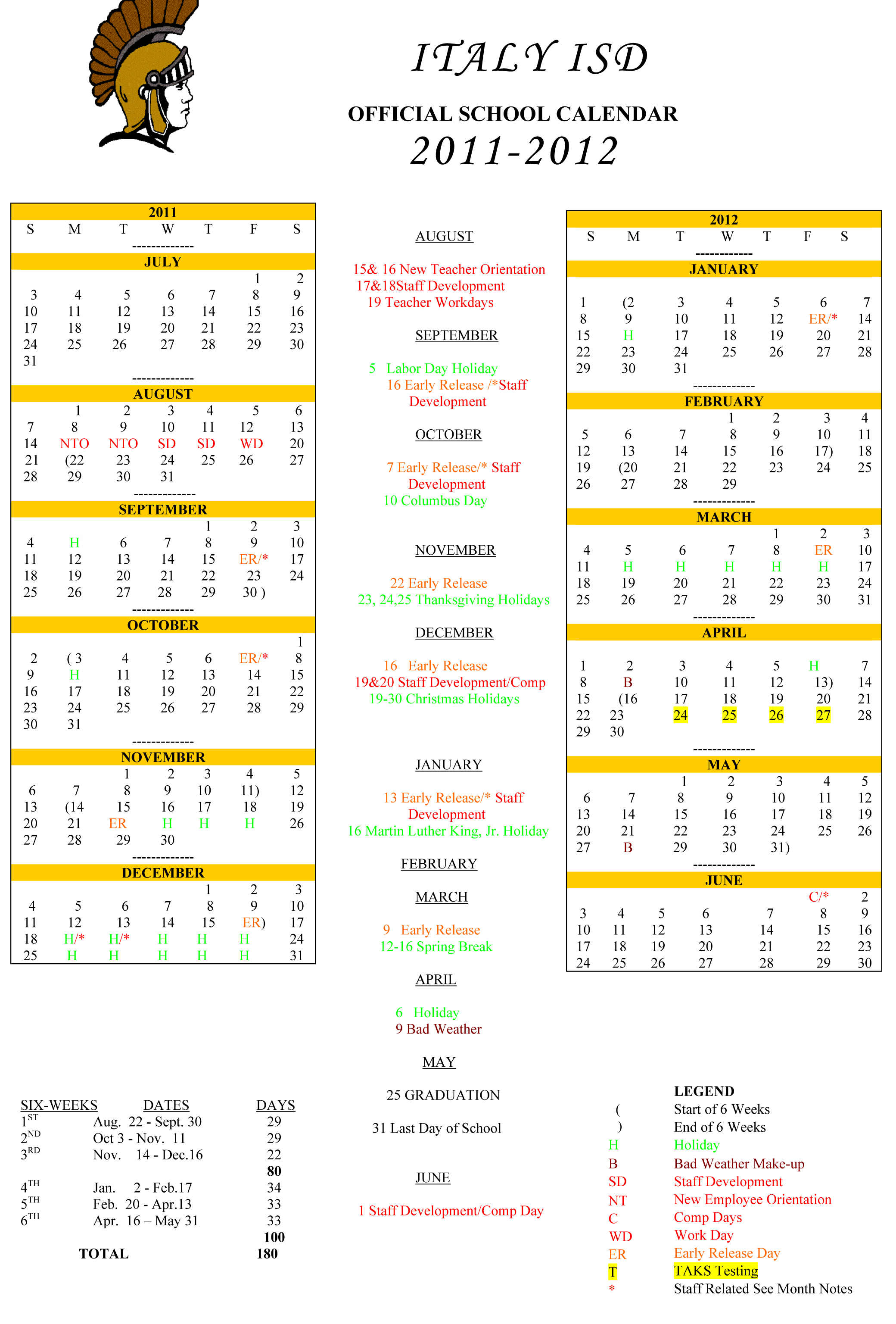 Italy ISD Calendar now available