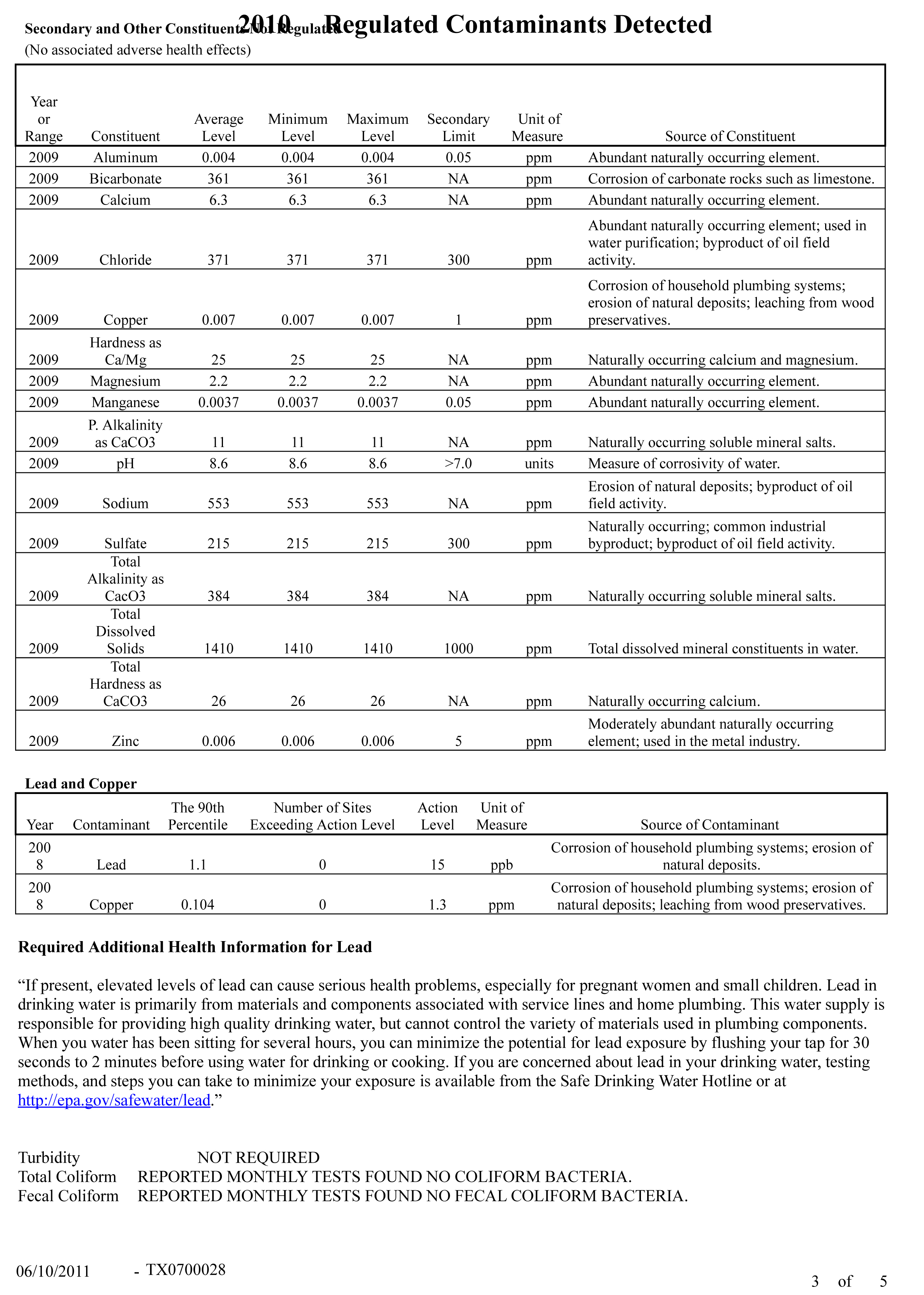 2010 City of Italy Water Consumer Confidence Report