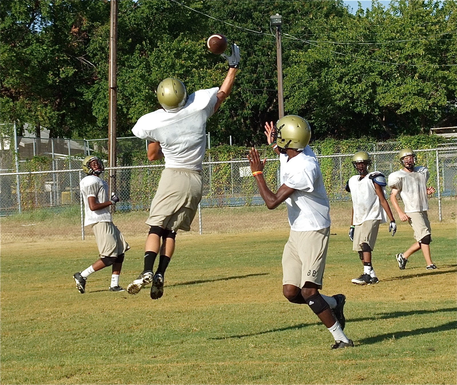 Gladiators near the end of 2-a-days workouts; scrimmage set for Saturday « previous story album next » Chase Hamilton deflects a pass intended for teammate Devonta Simmons. (Barry Byers) Download original photo