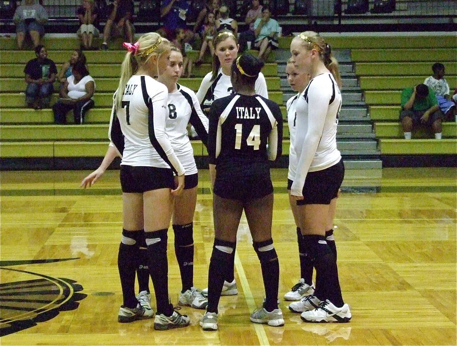 Lady Gladiators take on Kerens at home in the dome « previous story album next » Jameka Copeland(14), talks strategy with her teammates Megan Richards(7), Bailey Bumpus(8), Kaitlyn Rossa(3), Bailey Eubank(1) and Jaclynn Lewis(4). (Barry Byers) Download original photo