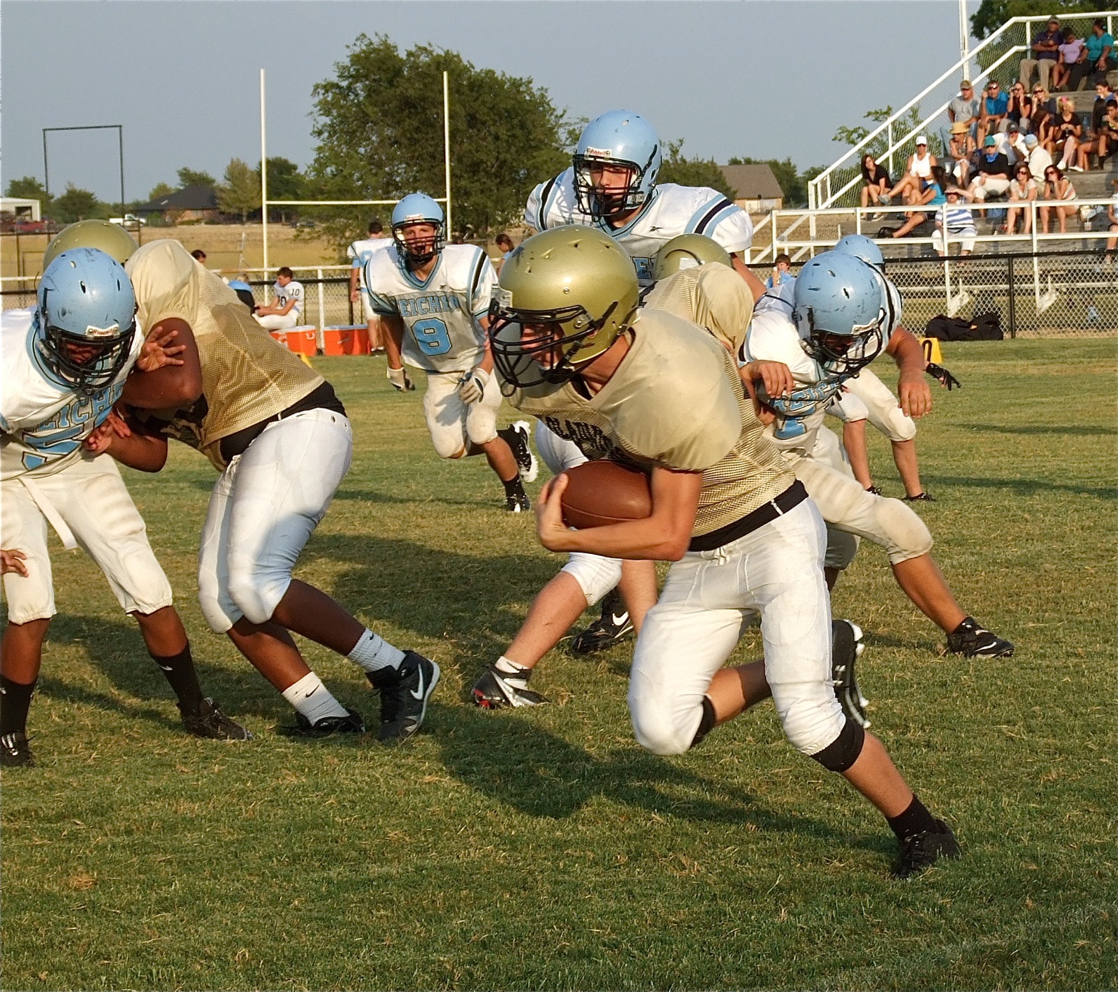 Gladiators gain confidence after successful scrimmage against Waco Reicher « previous story album next » JV Gladiator, Justin Wood, tries to outrun the Waco Reicher JV Cougars defense. (Barry Byers) Download original photo