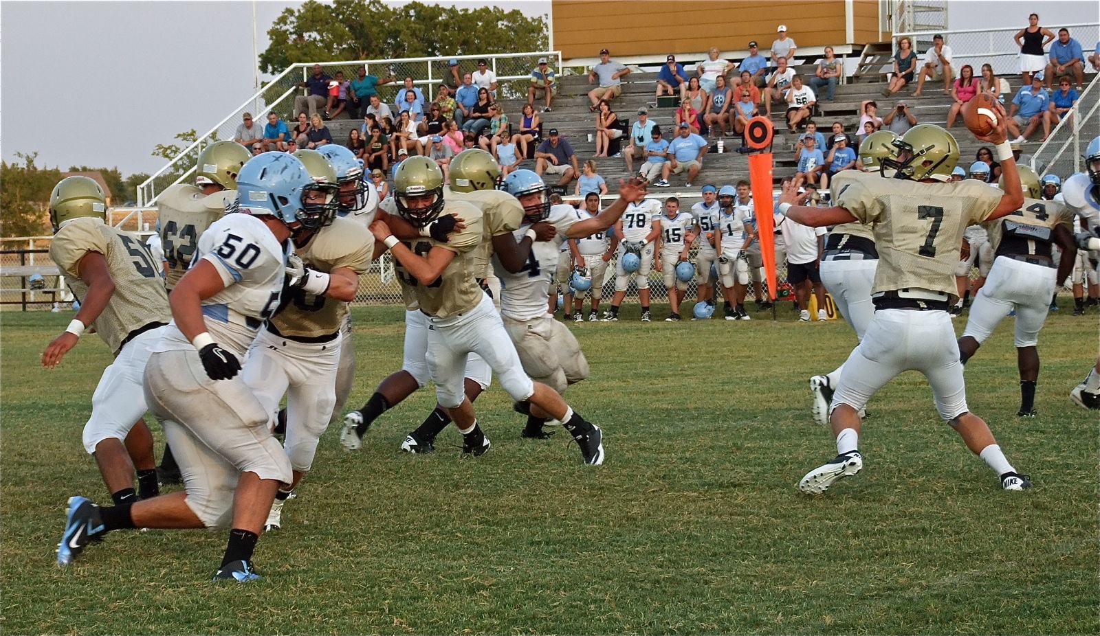 Gladiators gain confidence after successful scrimmage against Waco Reicher « previous story album next » The Gladiators offensive line buys time for quarterback, Jase Holden(7). (Barry Byers) Download original photo
