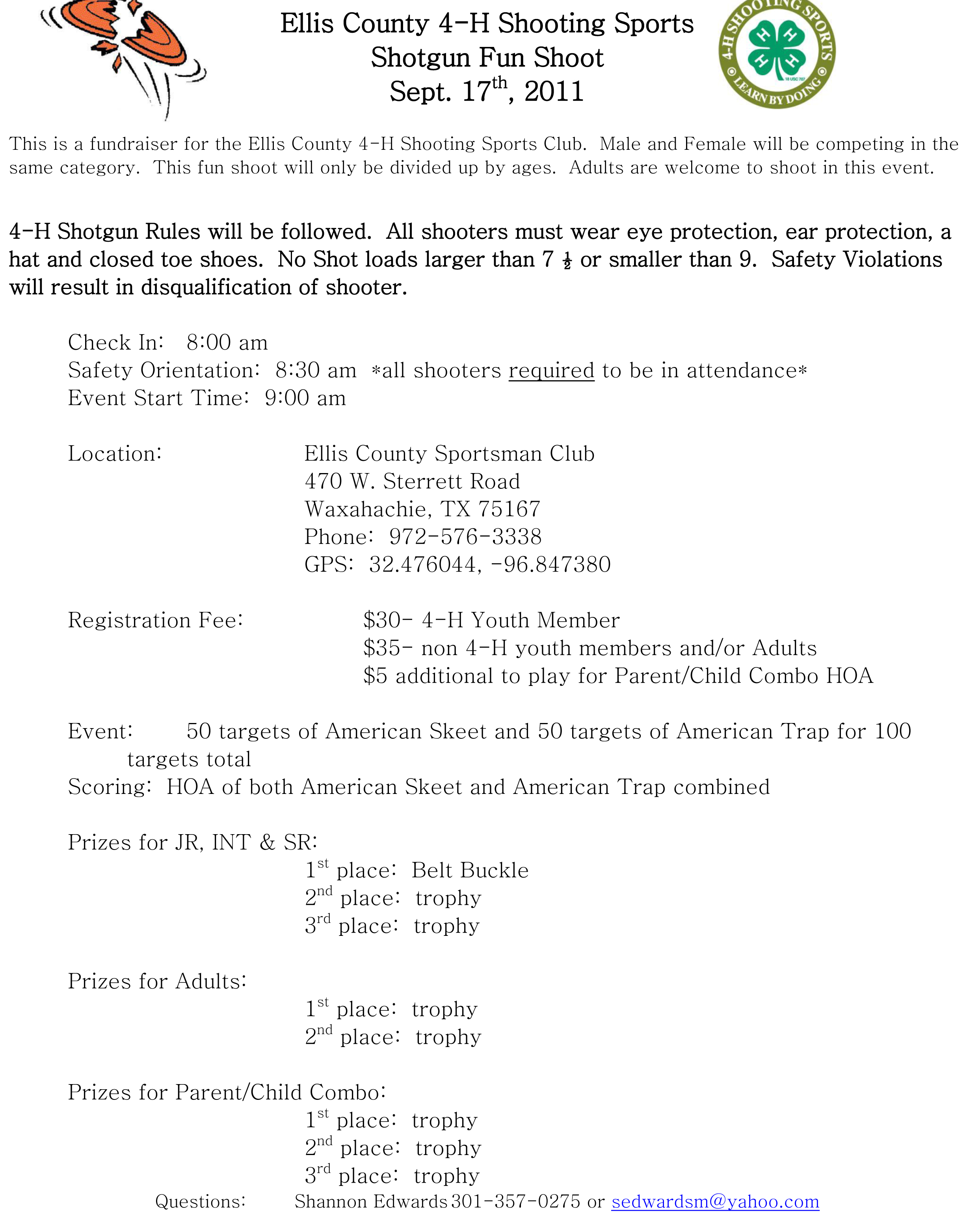 Skeet Shoot sponsored by an Ellis County 4H Club « previous story album next » Entry form-page 2 Download original photo