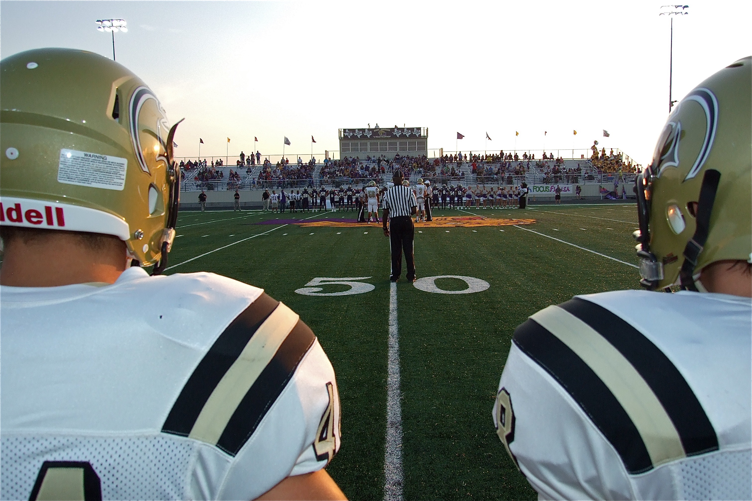 Gladiators give Mart all they can handle but Panthers survive with a 21-8 win « previous story album next » Ethan Saxon(44) and Hayden Woods(8) stare down midfield toward the coin toss. (Barry Byers) Download original photo