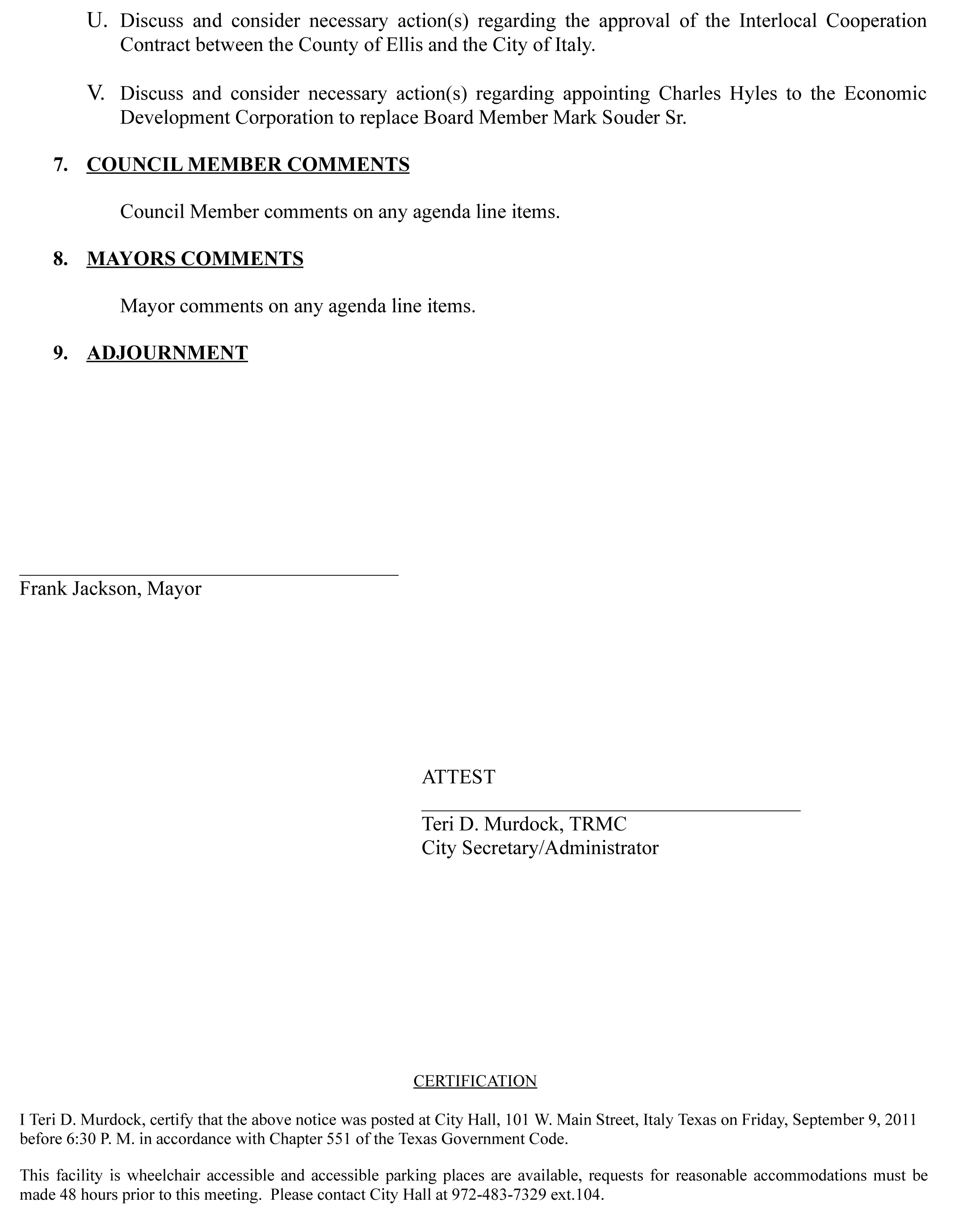 Agenda: Italy City Council Meeting, September 12, 2011 « previous story album next » Download original photo