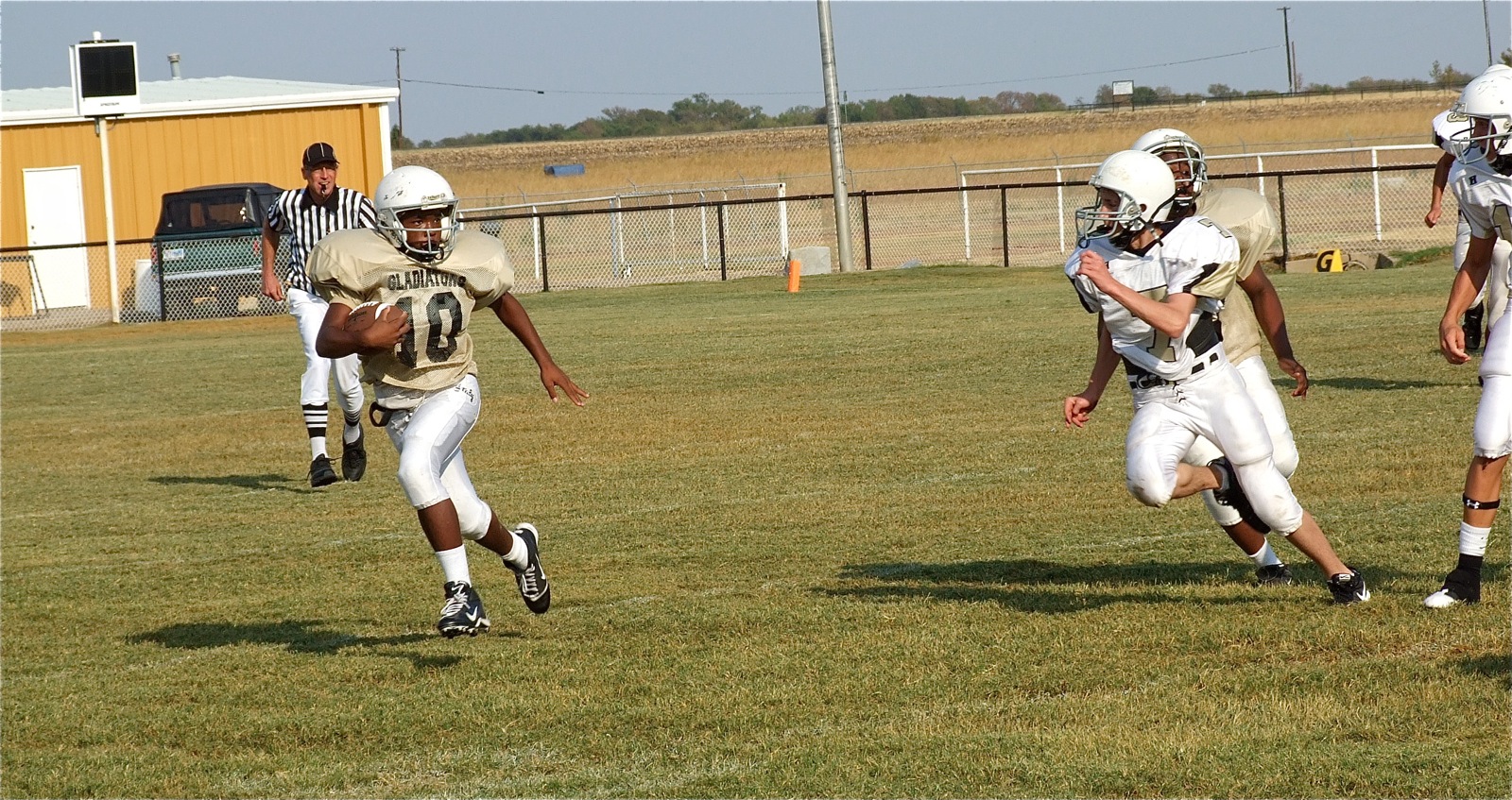 Italy’s Jr. High Gladiators play solid but Hubbard gets the win « previous story album next » Cameron Carter(10) finds running room off the reverse for the Gladiators. (Barry Byers) Download original photo