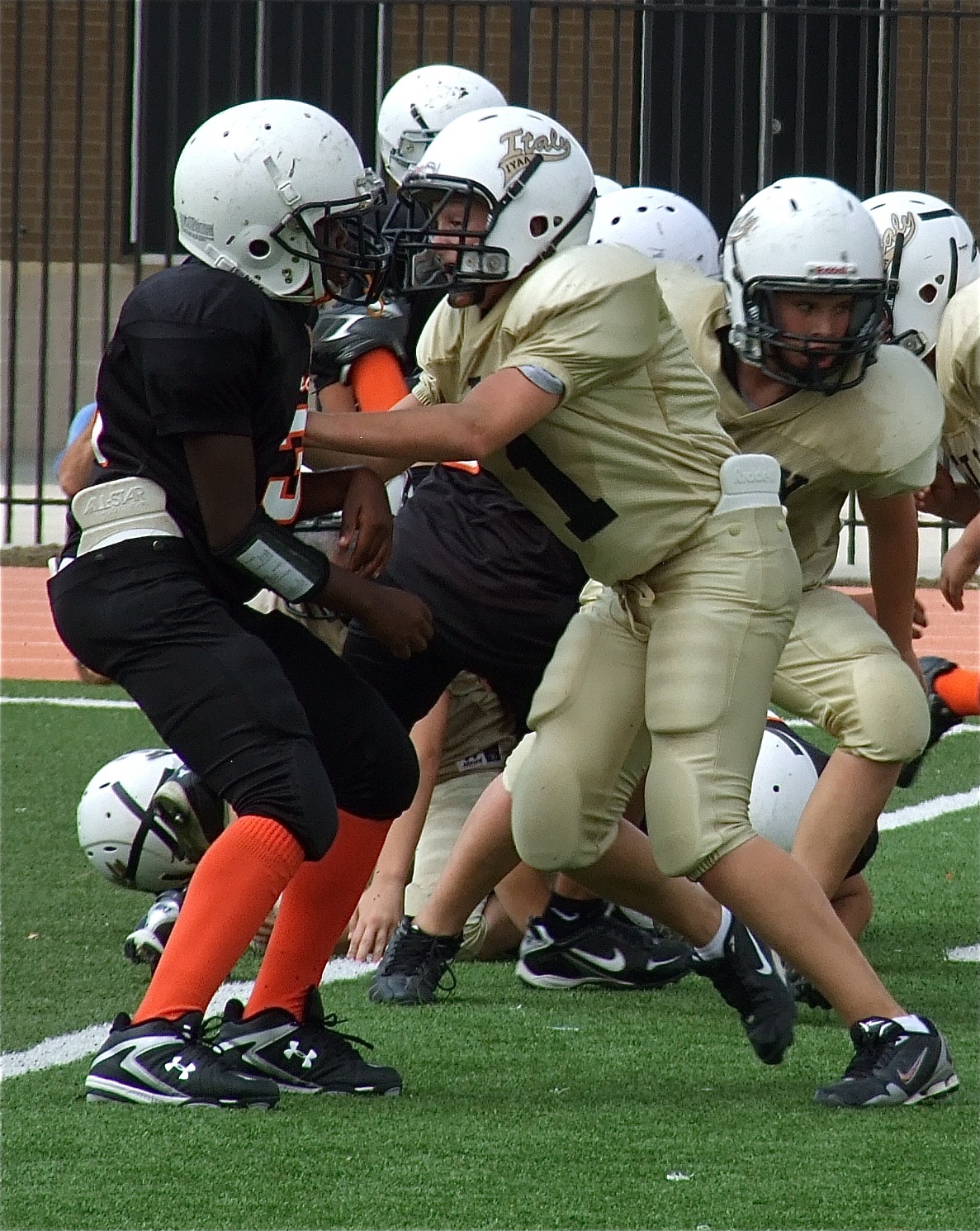 IYAA football players and cheerleaders test their skills against Ferris « previous story album next » Clay Riddle helps to push the IYAA A-Team past Ferris with a 9-0 win. (Shedric Walker) Download original photo
