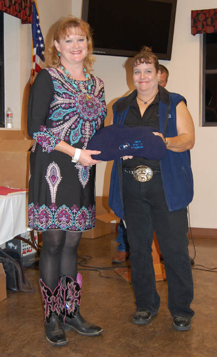 Ellis County Equine Association Presents Awards « previous story album next » Italy’s Julie Hinz, left, won Reserve Champion Junior Mare at Halter, Reserve Champion Junior Gelding at Halter, Top 5 Green Horse, Top 5 High Point English Adult, and top 5 High Point Western Adult. Download original photo