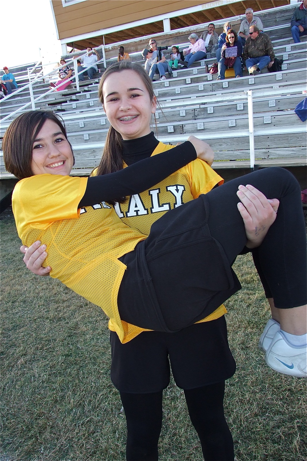 Italy’s Jr. High and JV football teams clash with the Cougars from Leon « previous story album next » Amber Hooker tries out her new pom-pom, Kaci Bales. (Barry Byers) Download original photo