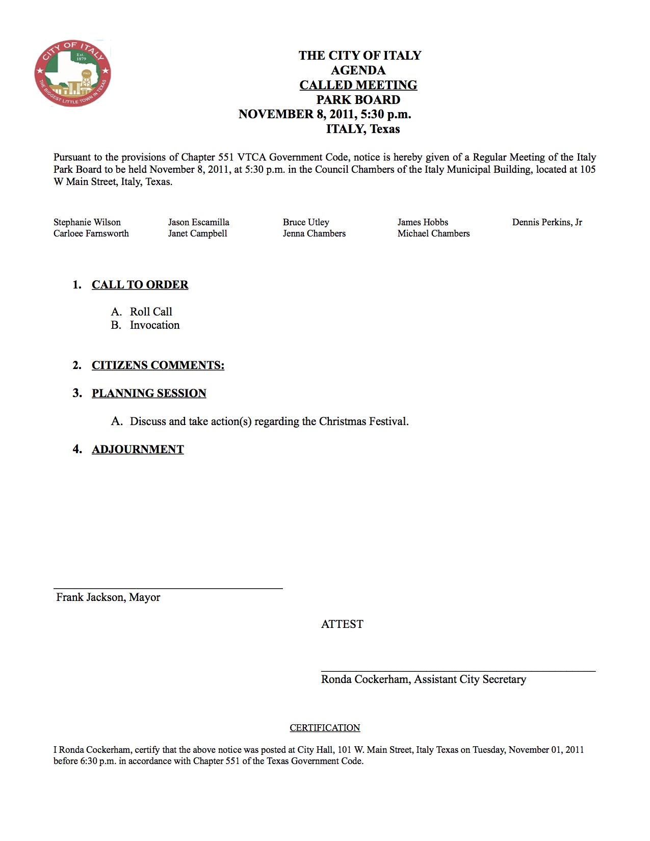Agenda: Italy Park Board Meeting, Tuesday, November 8, 2011 « previous story album next » Download original photo