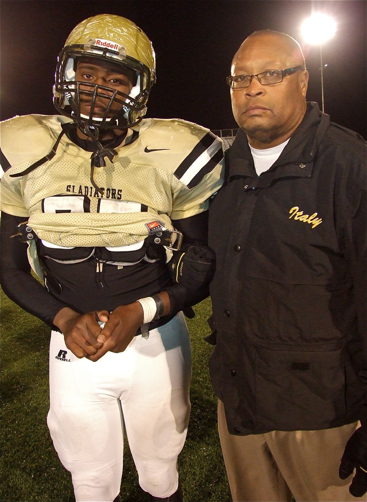 Additional photos from the Italy vs Franklin playoff game « previous story album next » Proud Papa. Gladiator assistant coach, Larry Mayberry, Sr. stands with his son, Larry Mayberry, Jr.(77) after the playoff game against Franklin. (Barry Byers) Download original photo